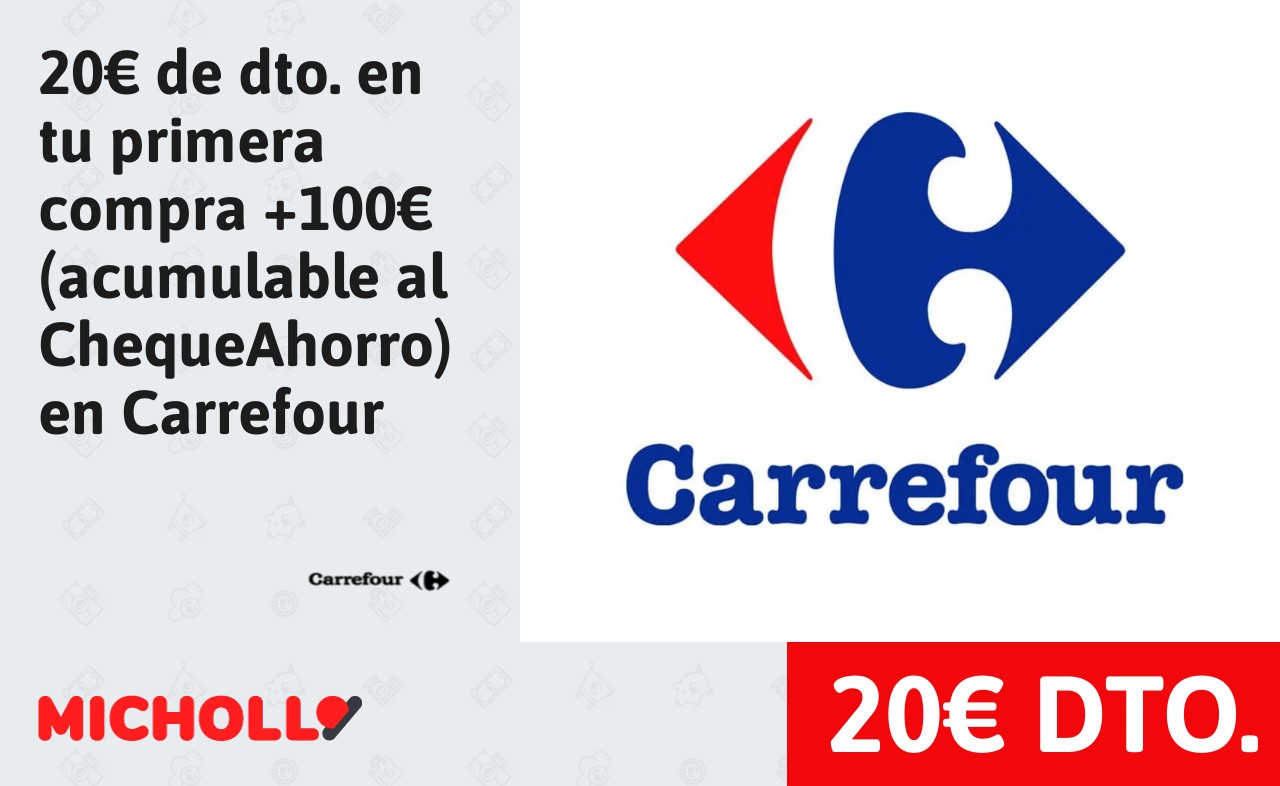 🔹 20€ de dto. en tu primera compra +100€ (acumulable al ChequeAhorro) en Carrefour❗️❤️