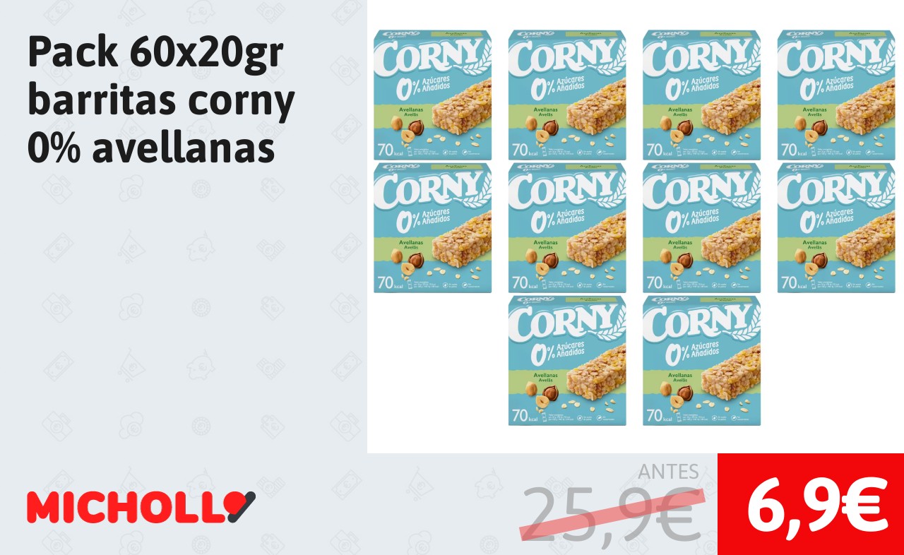 🔹 Pack 60x20gr barritas corny 0% avellanas solo 6,9€❗️❤️ (PVP: 25,9€)