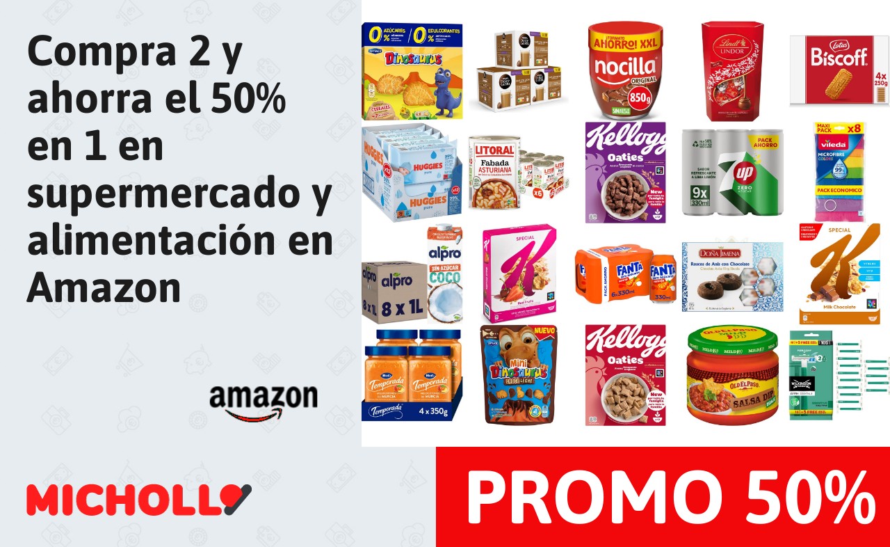 🔹 Compra 2 y ahorra el 50% en 1 en supermercado y alimentación en Amazon❗️❤️