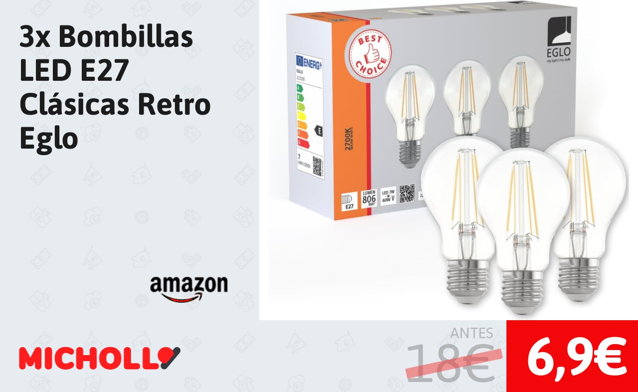 🔹 3x Bombillas LED E27 Clásicas Retro Eglo solo 6,9€❗️❤️ (PVP: 18€)