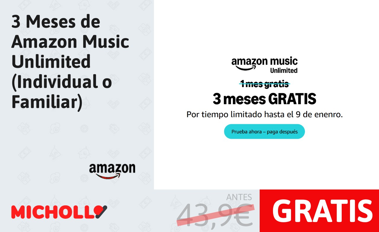 🔹 3 Meses de Amazon Music Unlimited (Individual o Familiar) GRATIS❗️❤️ (PVP: 43,9€)