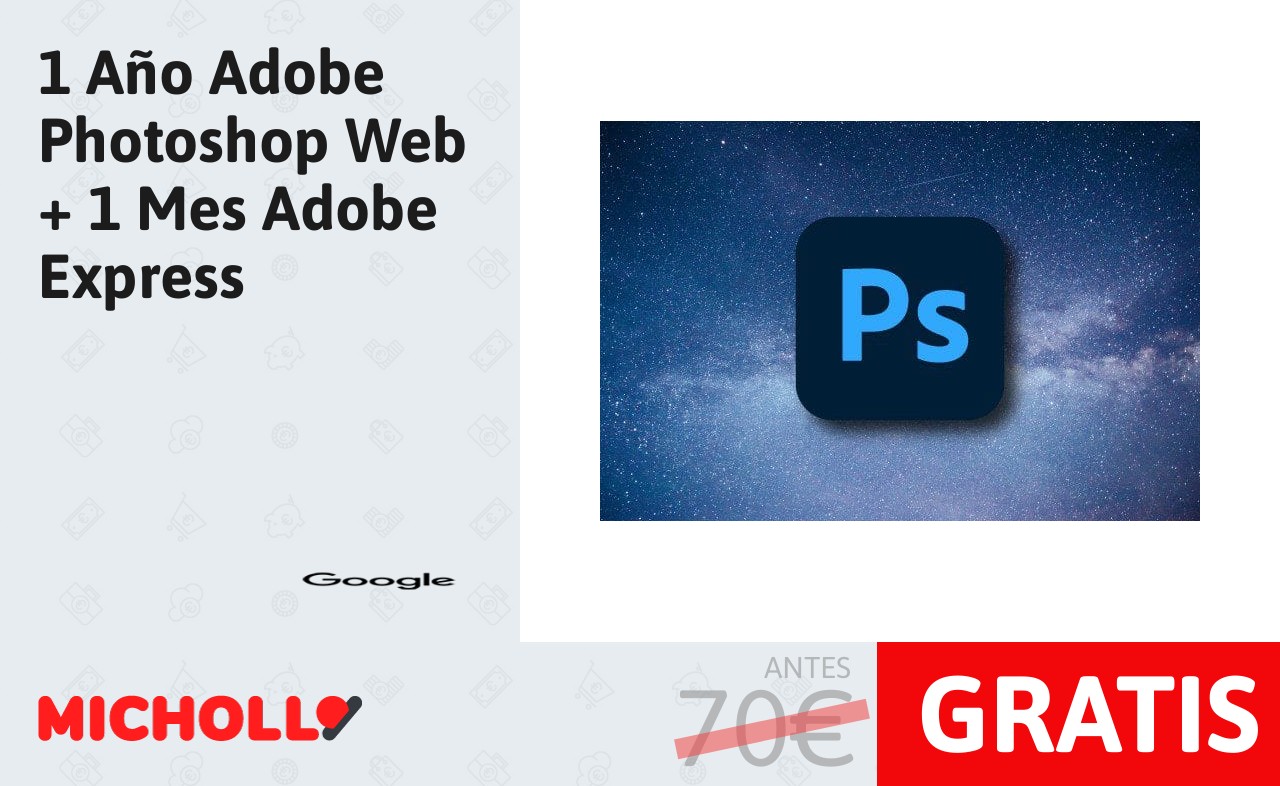 🔹 1 Año Adobe Photoshop Web + 1 Mes Adobe Express GRATIS❗️❤️ (PVP: 70€)