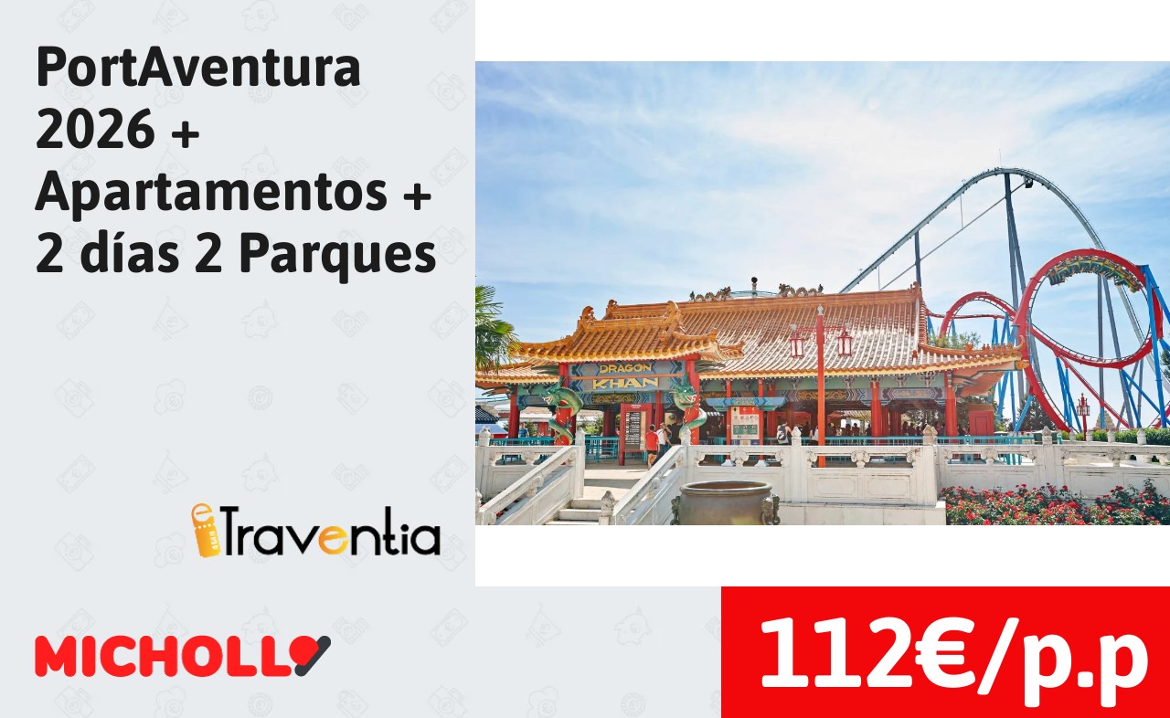 🔹 PortAventura 2026 + Apartamentos + 2 días 2 Parques solo 112€❗️❤️