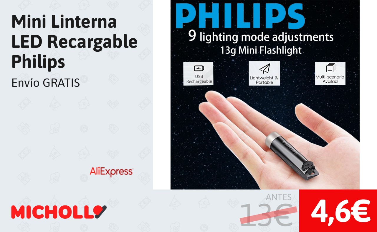 🔹 Mini Linterna LED Recargable Philips GRATIS❗️❤️ (PVP: 4,9€)