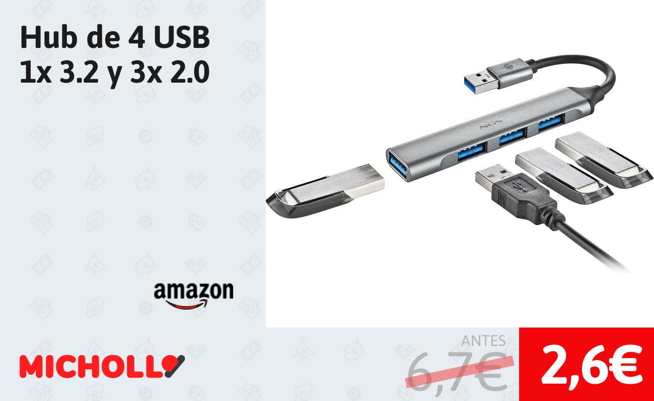🔹 Hub de 4 USB 1x 3.2 y 3x 2.0 solo 2,6€❗️❤️ (PVP: 6,7€)
