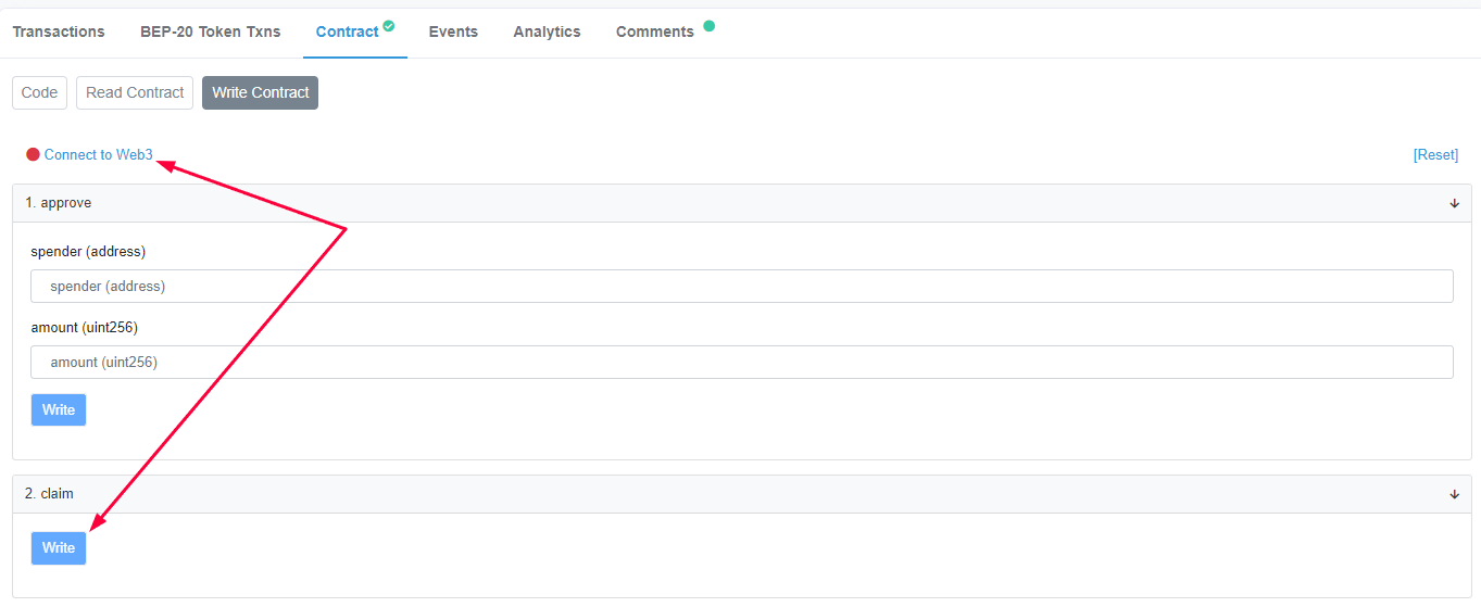 ➖ В разделе "claim" жмем "Write" и подтверждаем транзакцию в кошельке (скрин).