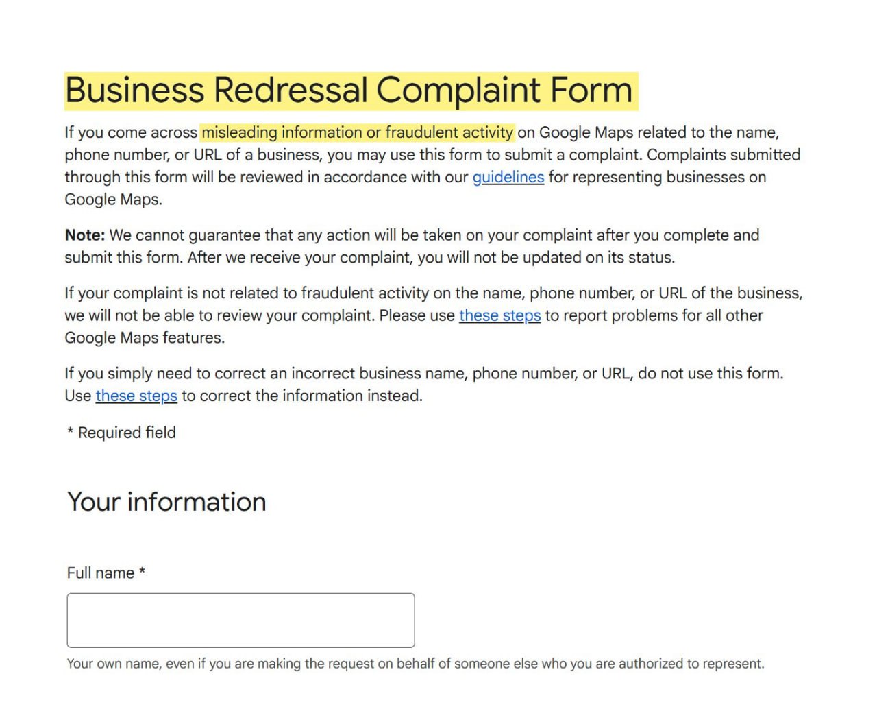 Google Business Redressal Complaint Form, пишет Даррен Шоу.Делая это таким образом, ты устраняешь риск быть раскрытым лично в рамках юридического запроса.