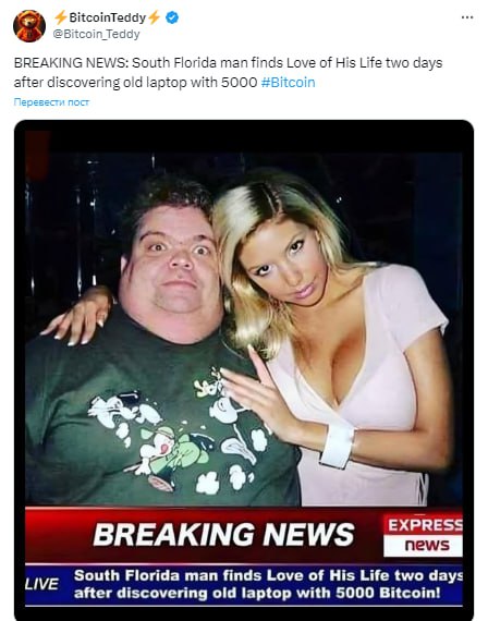 🔴 Срочные новости! Мужчина из Южной Флориды нашел любовь всей своей жизни всего через два дня после того, как обнаружил старый ноутбук с 5000 BTC