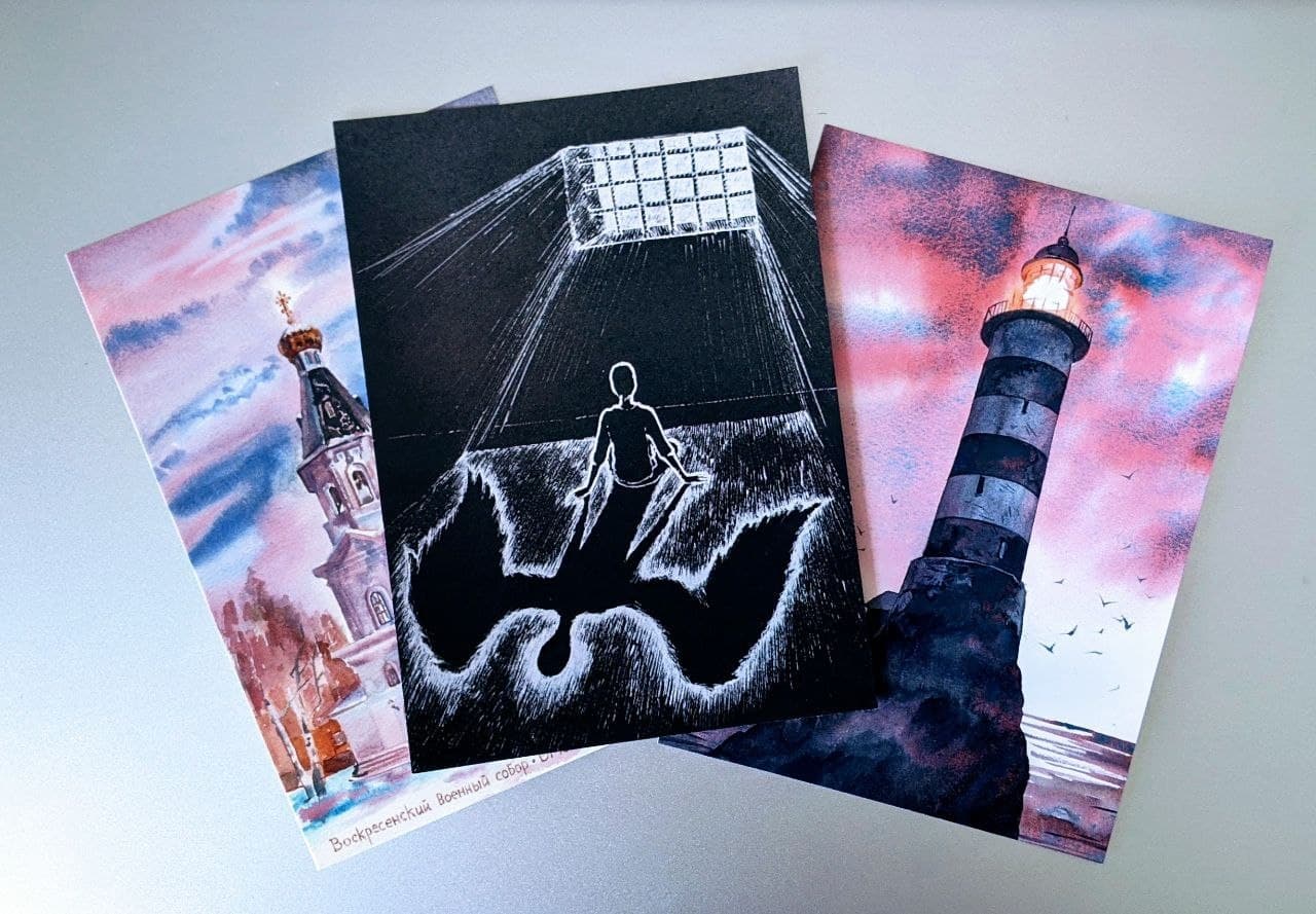 «Автор одной из открыток — художник Анна — удивительно точно передала всё, пробивает до слёз. После утренней молитвы я именно в этой позе смотрю через решётку и пытаюсь послать облако любви маме и сыну. И крылья... они тоже есть. Вспоминается фраза из одного письма Флобера: «Мы — птицы в клетке, и жизнь давит тяжелее всего на тех, у кого крылья больше».