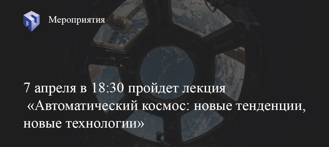 В среду, 7 апреля в 18:30 пройдет лекция по теме «Автоматический космос: новые тенденции, новые технологии».