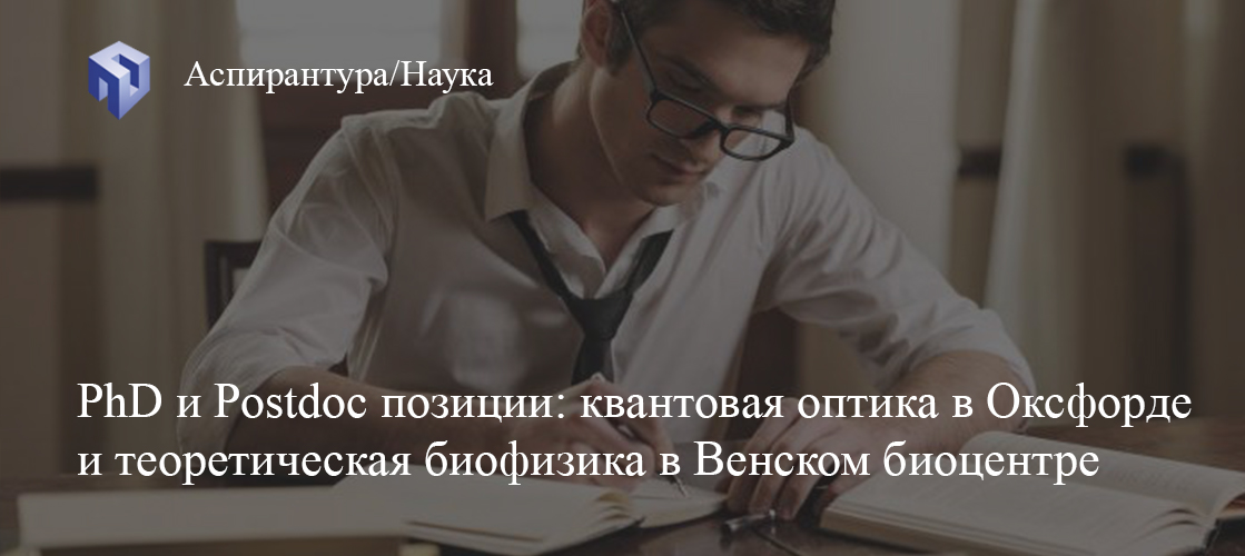 Друзья, сегодня расскажем о двух классных научных группах с открытыми PhD и Postdoc позициями. Одна из них работает в области квантовой оптики на физфаке Оксфорда, а вторая занимается теоретической биофизикой в Венском биоцентре.