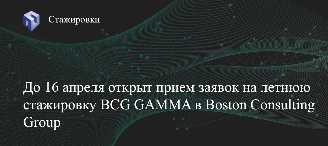 До 16 апреля открыт прием заявок на летнюю стажировку в Boston Consulting Group. BCG GAMMA — это команда, которая создает будущее, объединяя потенциал человека и искусственного интеллекта. Проекты GAMMA находятся на пересечении data science и бизнеса, и их главная задача — трансформировать бизнес-процессы с помощью анализа больших данных и машинного обучения.