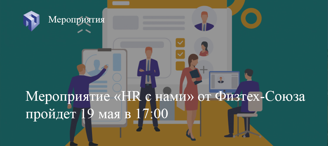 Друзья, Физтех-Союз проведет в эту среду 19 мая первое мероприятие нового формата с названием «HR с нами». Начало в 17.00, место проведения — недавно открывшаяся Теория.Цифра (-1 этаж Физтех.Цифры).