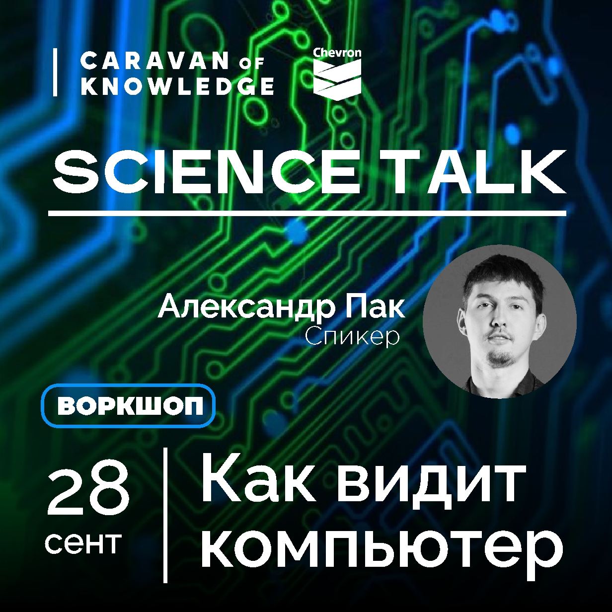 Science Talk — цикл мероприятий, где казахстанские и международные ученые объясняют, чем живет современная наука на примере собственных исследований, разработок и изобретений. Организатор Science Talk — @caravanofknowledge при поддержке компании «Шеврон».