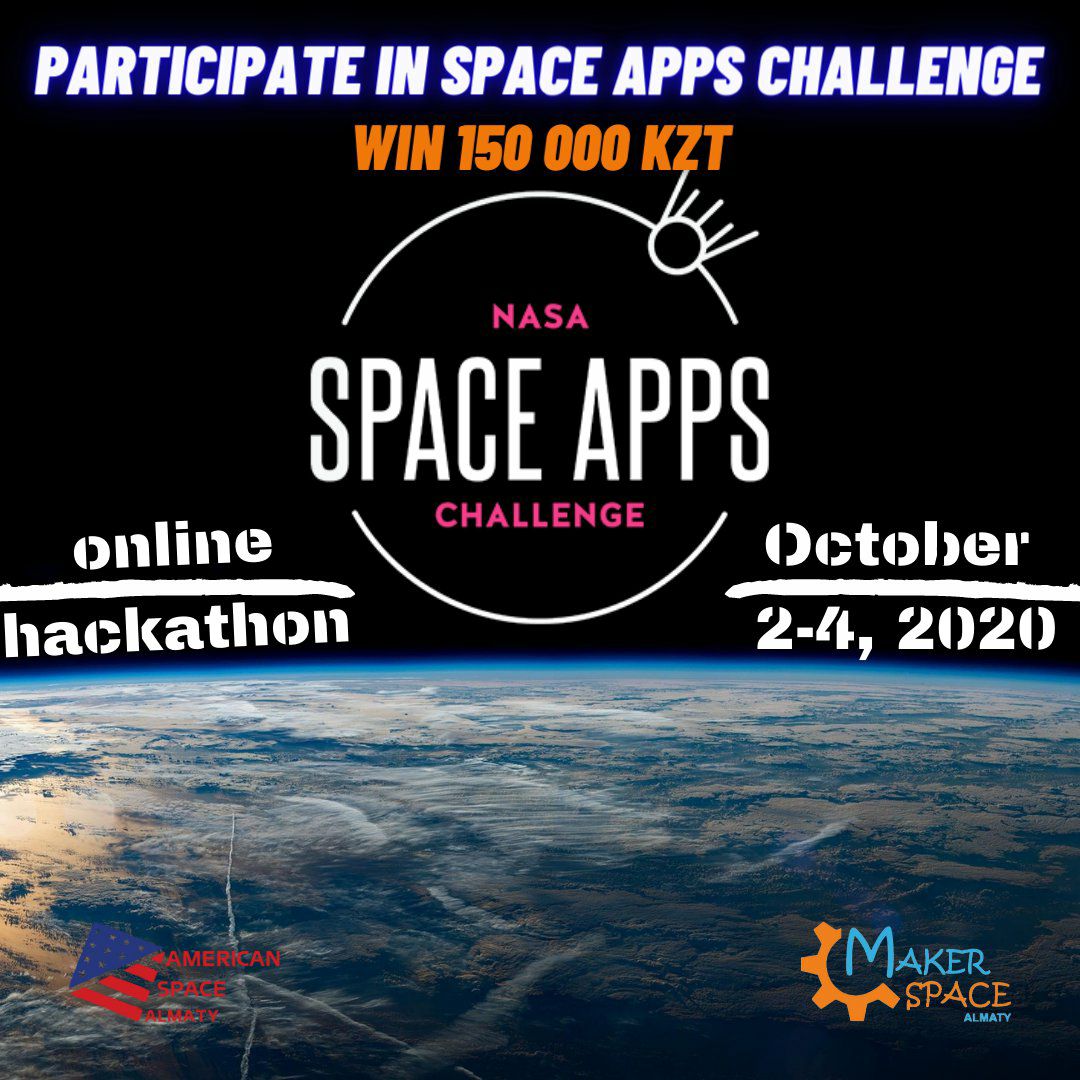Необходимо зарегистрироваться на сайте NASA Challenge (локация Алматы). Соберите команду из 2-6 человек и в течение 48 часов создайте проект, который отвечает на один из челленджей от NASA.