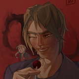 Первое лëгкое касание сопровождается тихим-тихим мокрым звуком, а спина чуть выгибается. Оскаре приходится закусить губу. Она тяжело и часто дышит носом, пока медленно погружает в себя пальцы и до боли сжимает сосок, всё это время не отрывая глаз от тела Голди на фото.