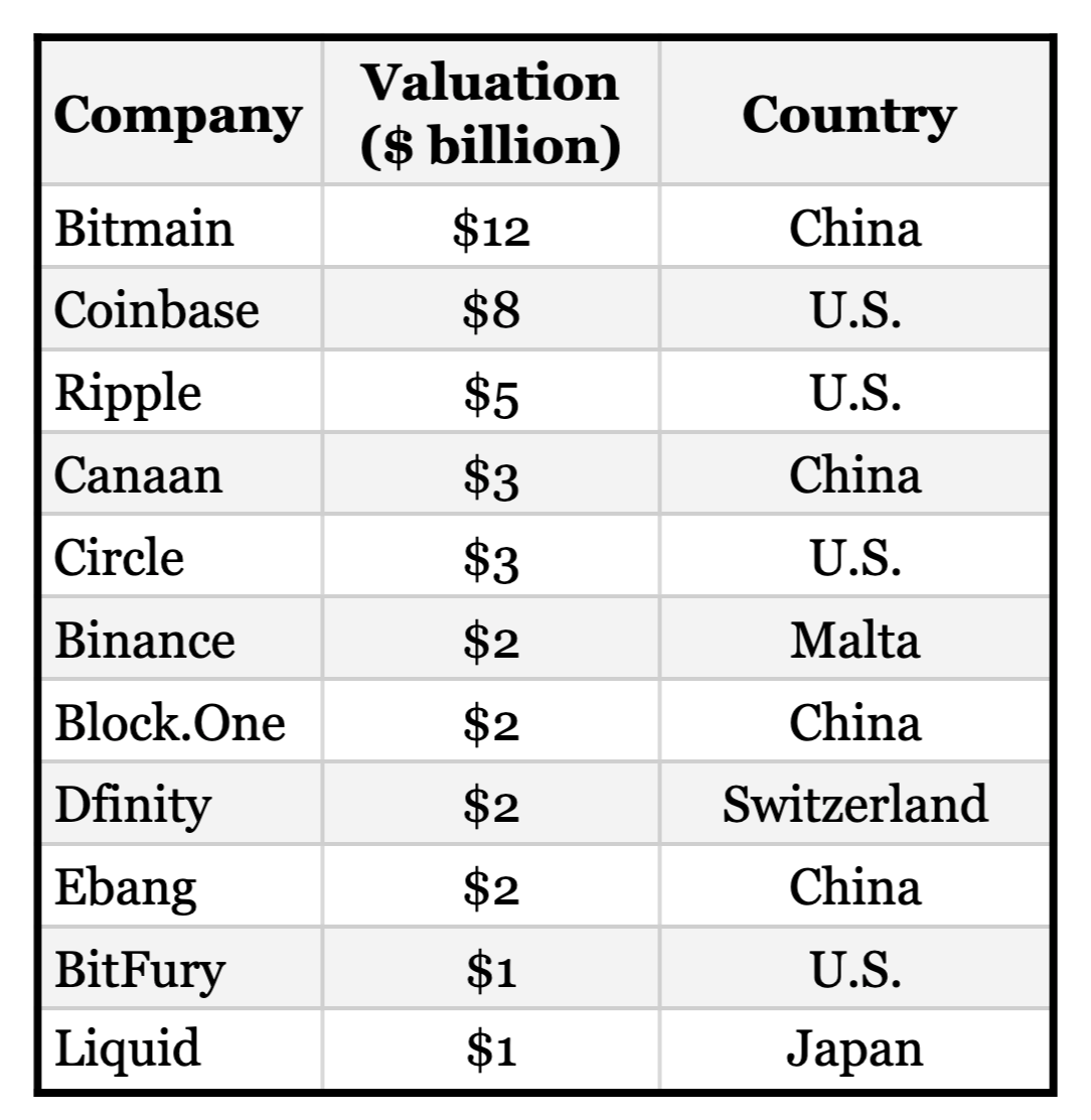 Криптовалютные компании-единороги, оценивающиеся более чем в 1 млрд. долларов❗️