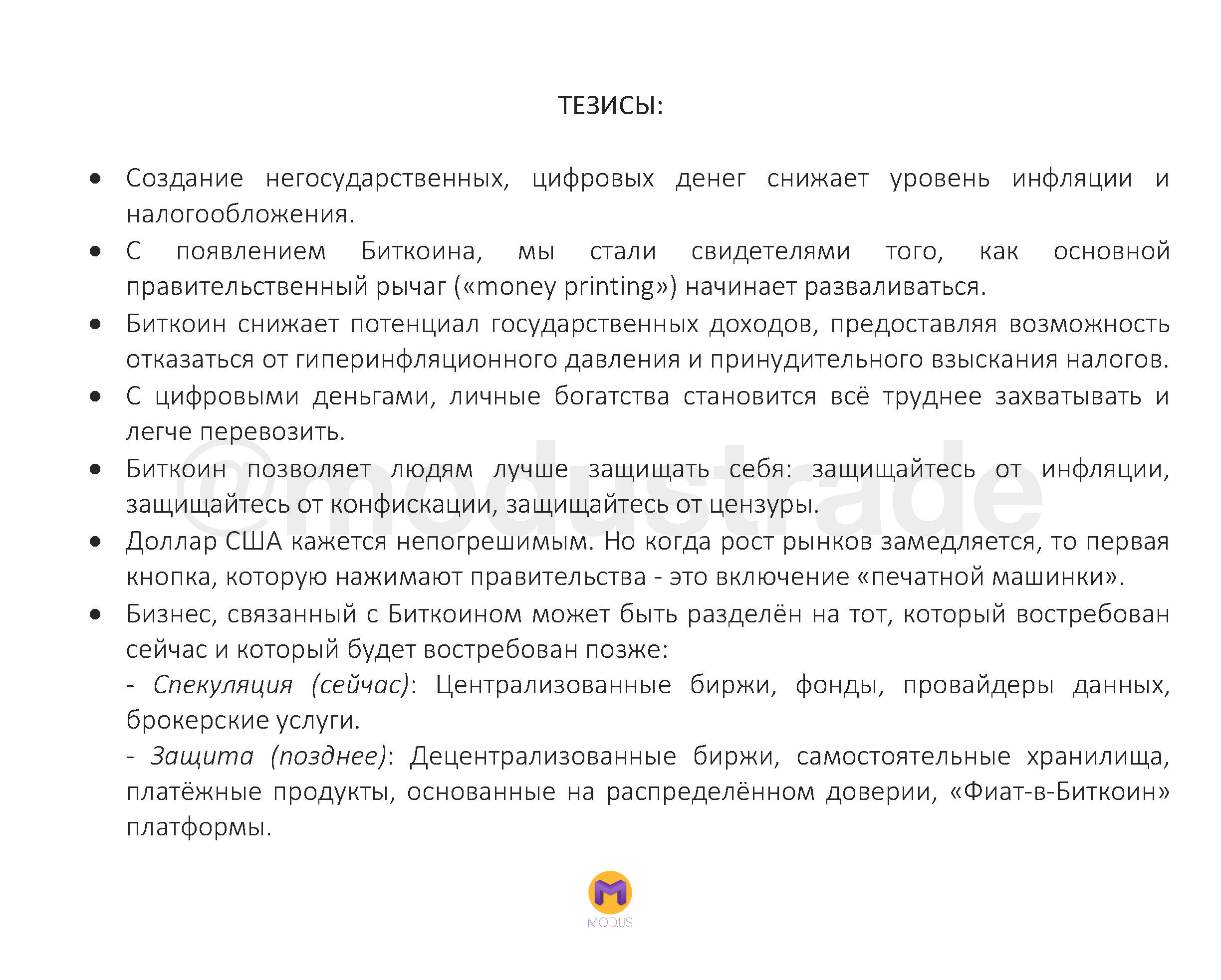 Кстати, ребят, мы все в одной лодке, поэтому любая интересная инфа, которая помогает оценивать рыночную ситуацию - приветствуется. Можете присылать "полезности" мне на почту moduscapital@mailfence.com. Только не шлите, пожалуйста, новости, волновой анализ и любые ссылки на TV. Присылайте статьи о манипуляциях, алго-трейдинге, маркет-мейкинге, какие-то закономерности и корреляции между активами, ресёрчи, наблюдения, майнинговые инсайды и т.д. (на любом языке). Думаю, т.к. вы подписаны на мой канал, то в принципе понимаете какой контент интересен. Я за всем физически не могу уследить, поэтому буду рад такому фидбеку...😉