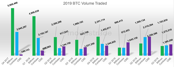 Matt D'Souza, сооснователь Blockware Solutions, считает, что глобально #Биткоин уже находится в бычьей фазе рынка. Согласно его данным, бычий тренд #BTC в 1 половине 2019 года стал следствием усиления позиций институционалов в криптосреде и отсутствия интереса к Биткоину у розничных трейдеров и инвесторов. Объём торгов на #CME превзошёл объёмы торгов на спотовых криптобиржах в Q1-Q3 2019 года, опередив показатели #Coinbase и #Bitfinex.
