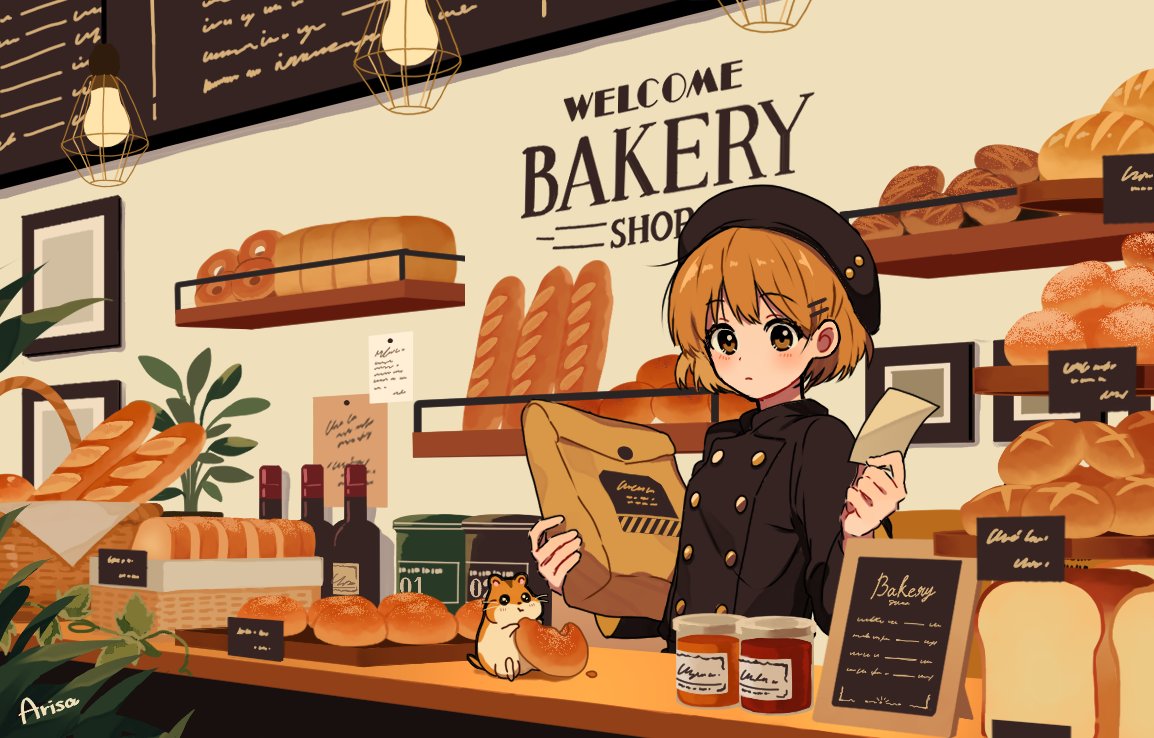 Arisa🐧 ( #illust_Arisa ) パン屋さん #創作 https://t.co/YJzjJPF0te
