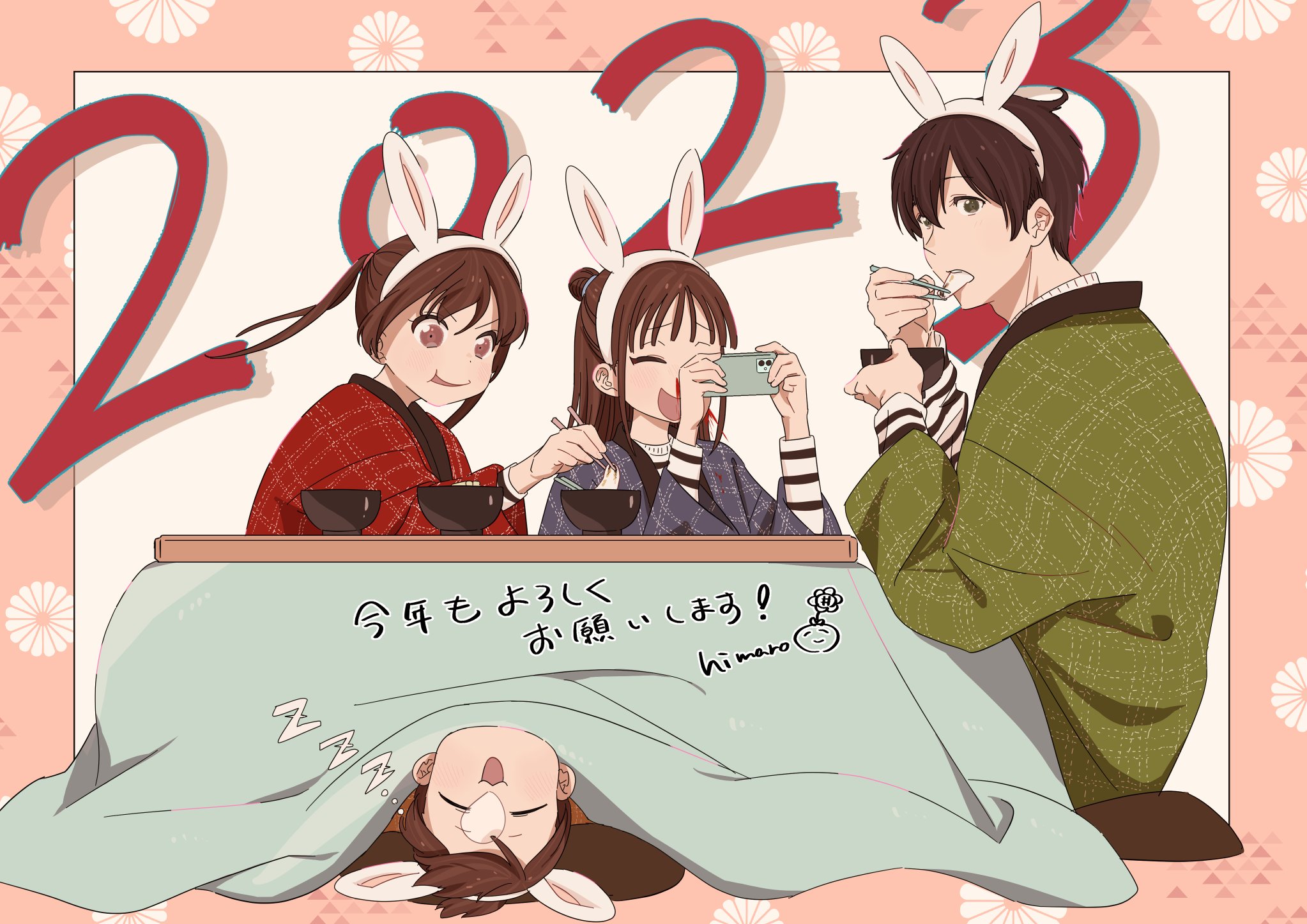 himaro🌻 ( #_himar0xx ) 遅れに遅れた年賀絵です!!!!🐰🐰🐰🐰 https://t.co/gEESQOy3ei