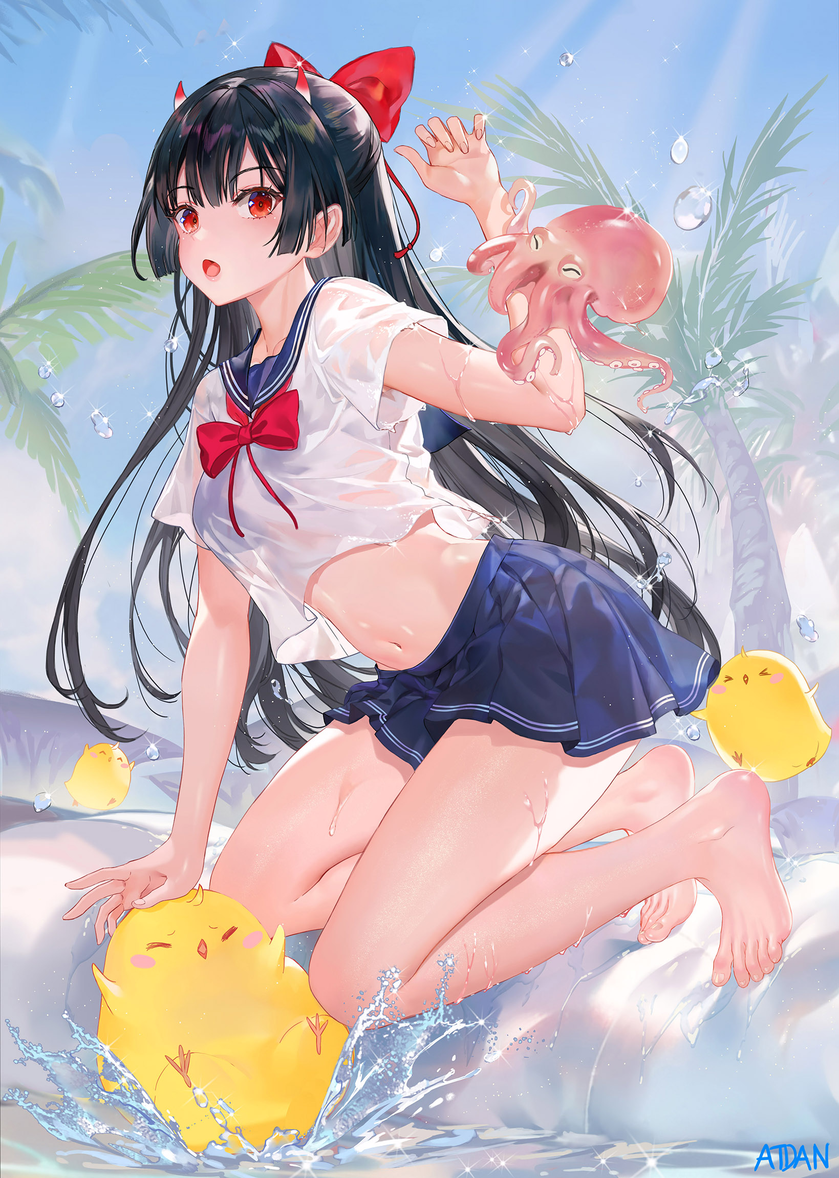 atdan azur lane manjuu (azur lane) sakawa (azur lane) bra horns see through seifuku wet wet clothes | #1059363 | yande.re