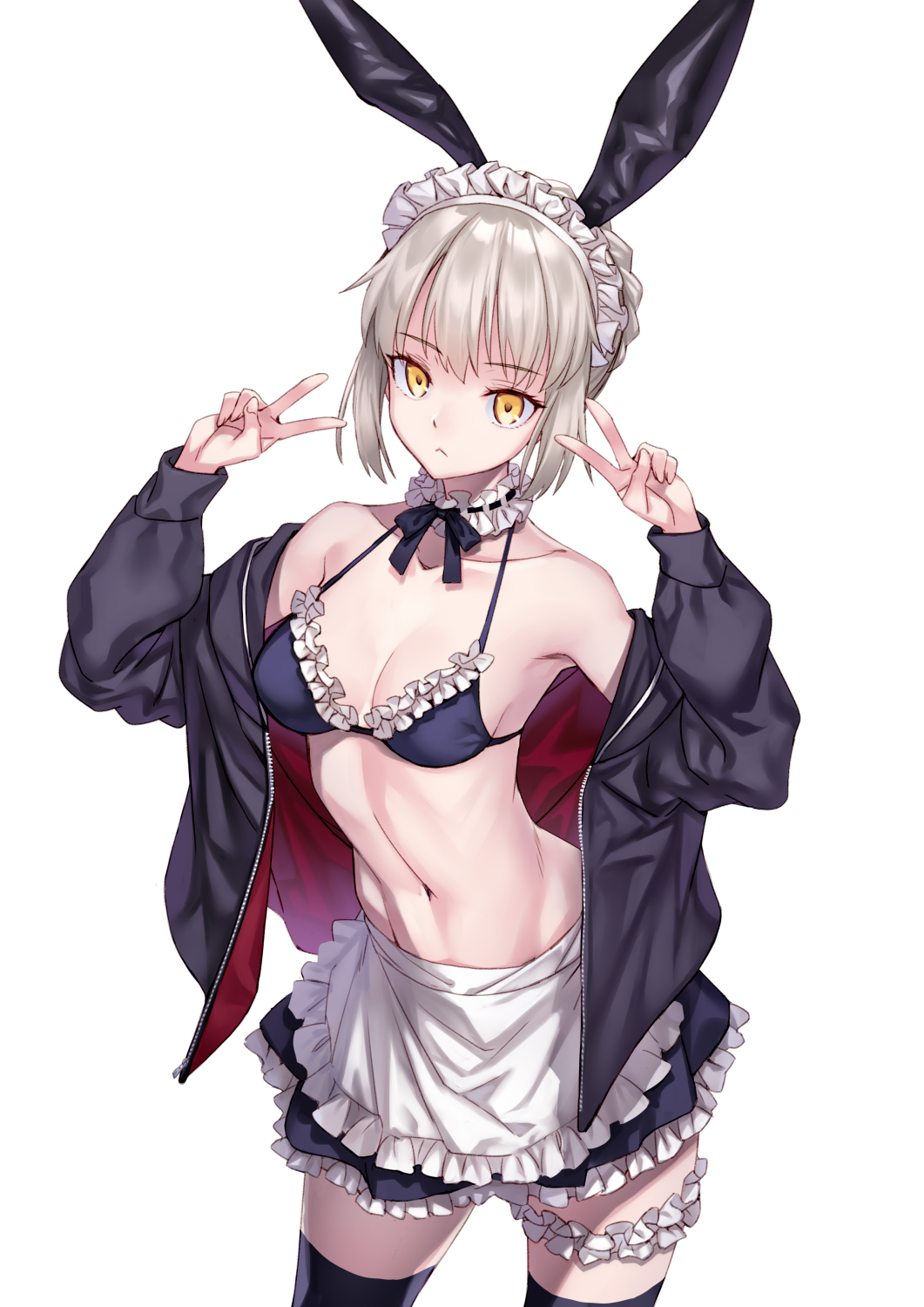 松竜 ( #matsuryun ) 流行りに乗って属性が過積載になった無表情ダブルピースメイドバニー水着オルタです