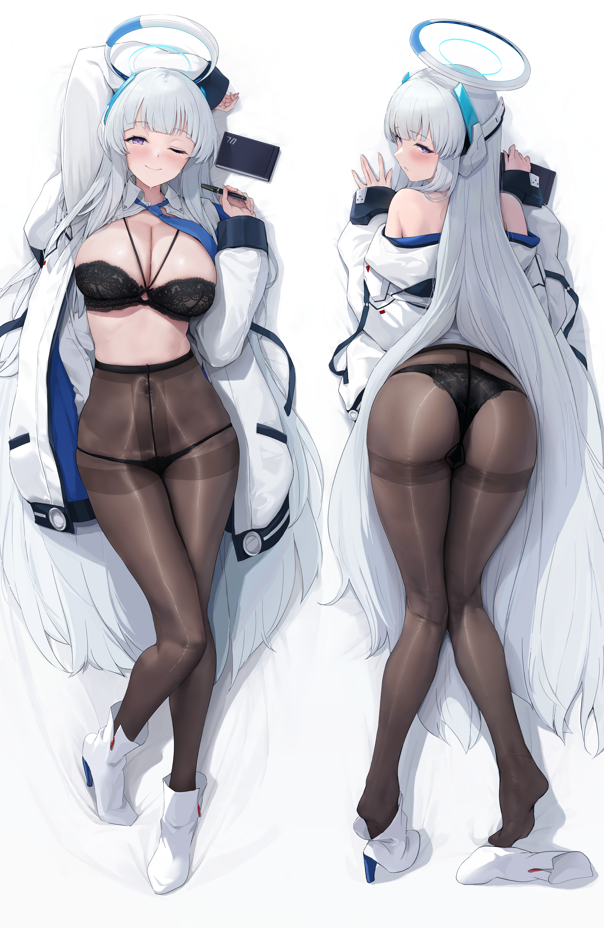 akita_hika angel ass blue_archive bra dakimakura detexted heels open_shirt pantsu pantyhose sample seifuku thong ushio_noa