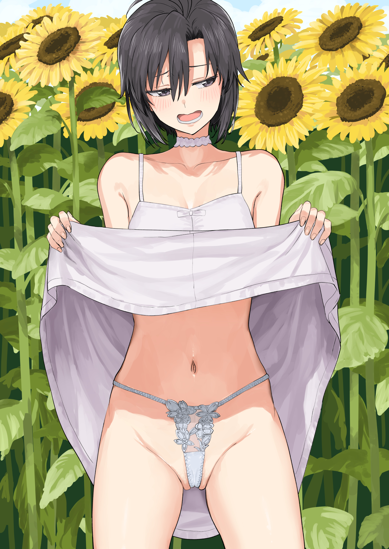 jiiwara no_bra pantsu shirt_lift skirt_lift thong undressing