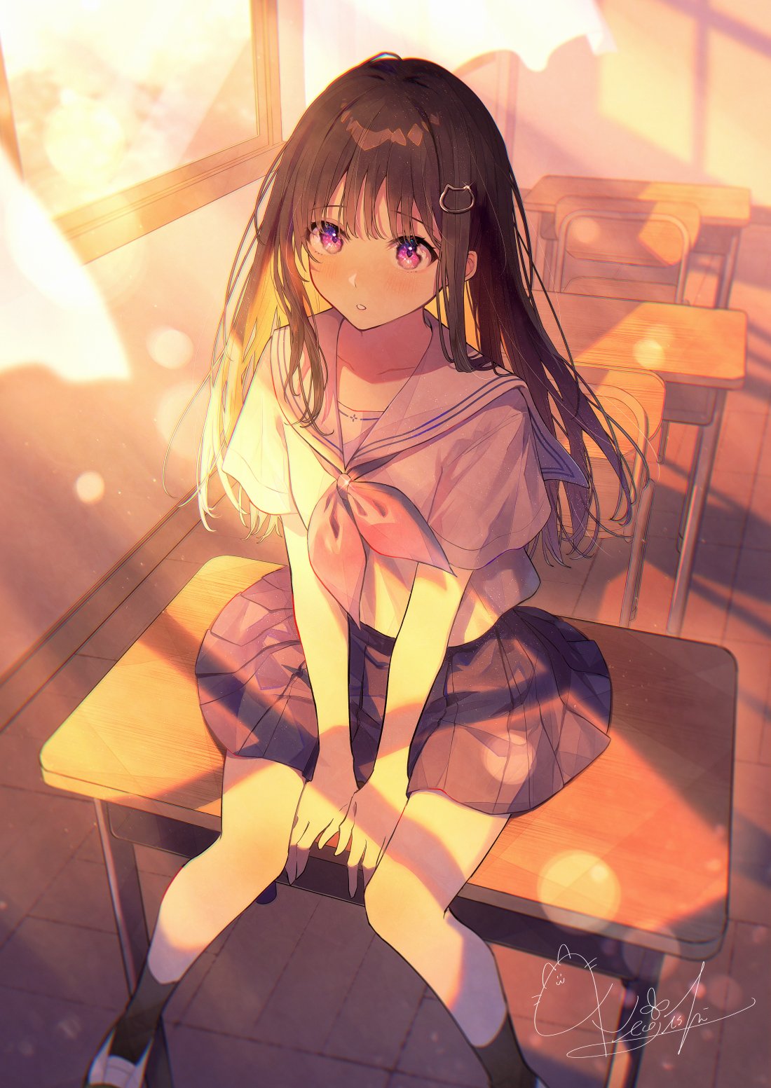 ねこじし ( #2_Necojishi ) 夕暮れに染まる教室で。 https://t.co/wbcVTuNdCU