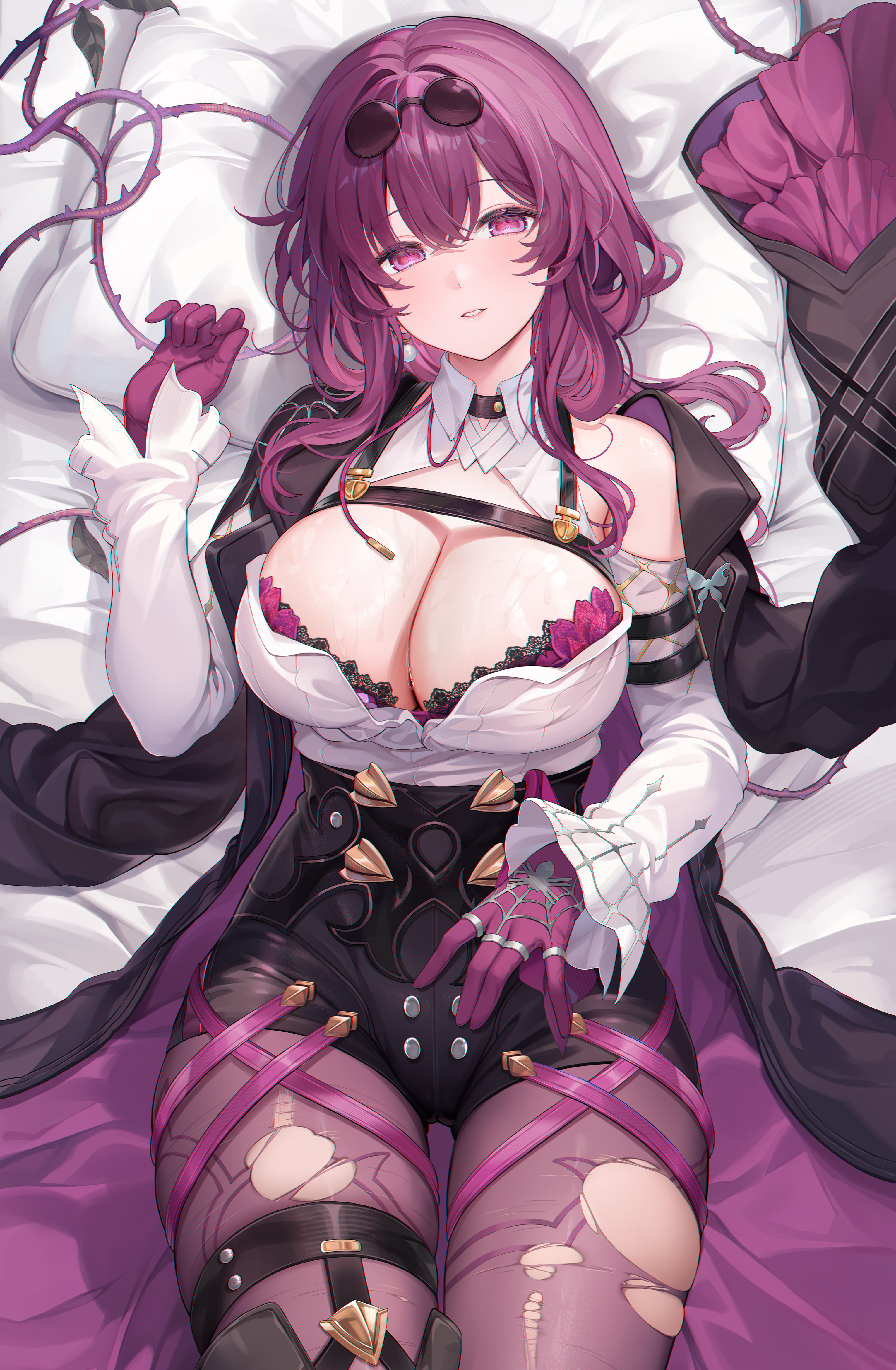 bra dakimakura garter honkai:_star_rail kafka_(honkai:_star_rail) machi_(7769) megane open_shirt pantyhose stockings thighhighs torn_clothes