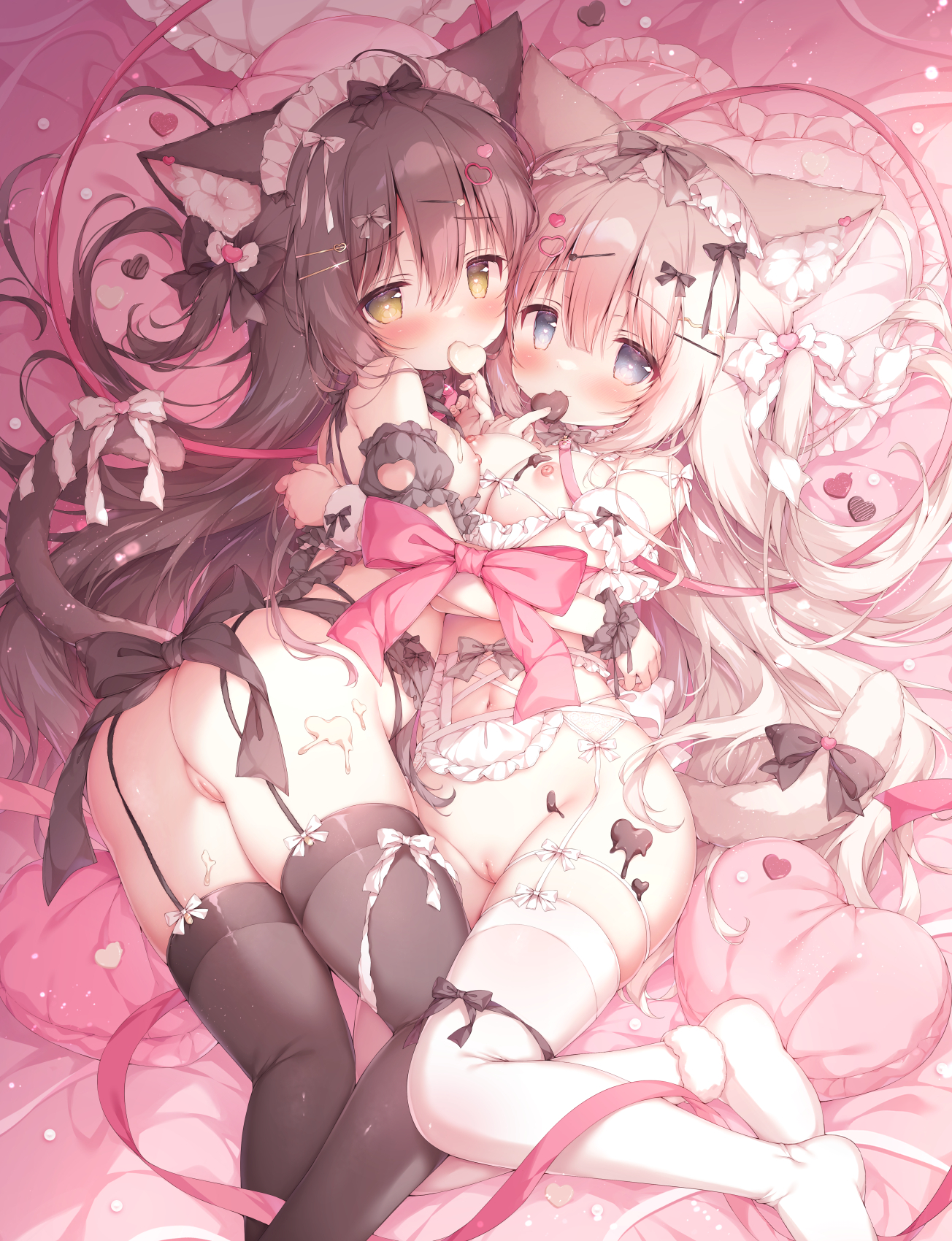 animal_ears bottomless breasts cream detexted garter garter_belt loli maid momozu_komamochi nekomimi nipples no_bra pussy stockings symmetrical_docking tail thighhighs uncensored valentine