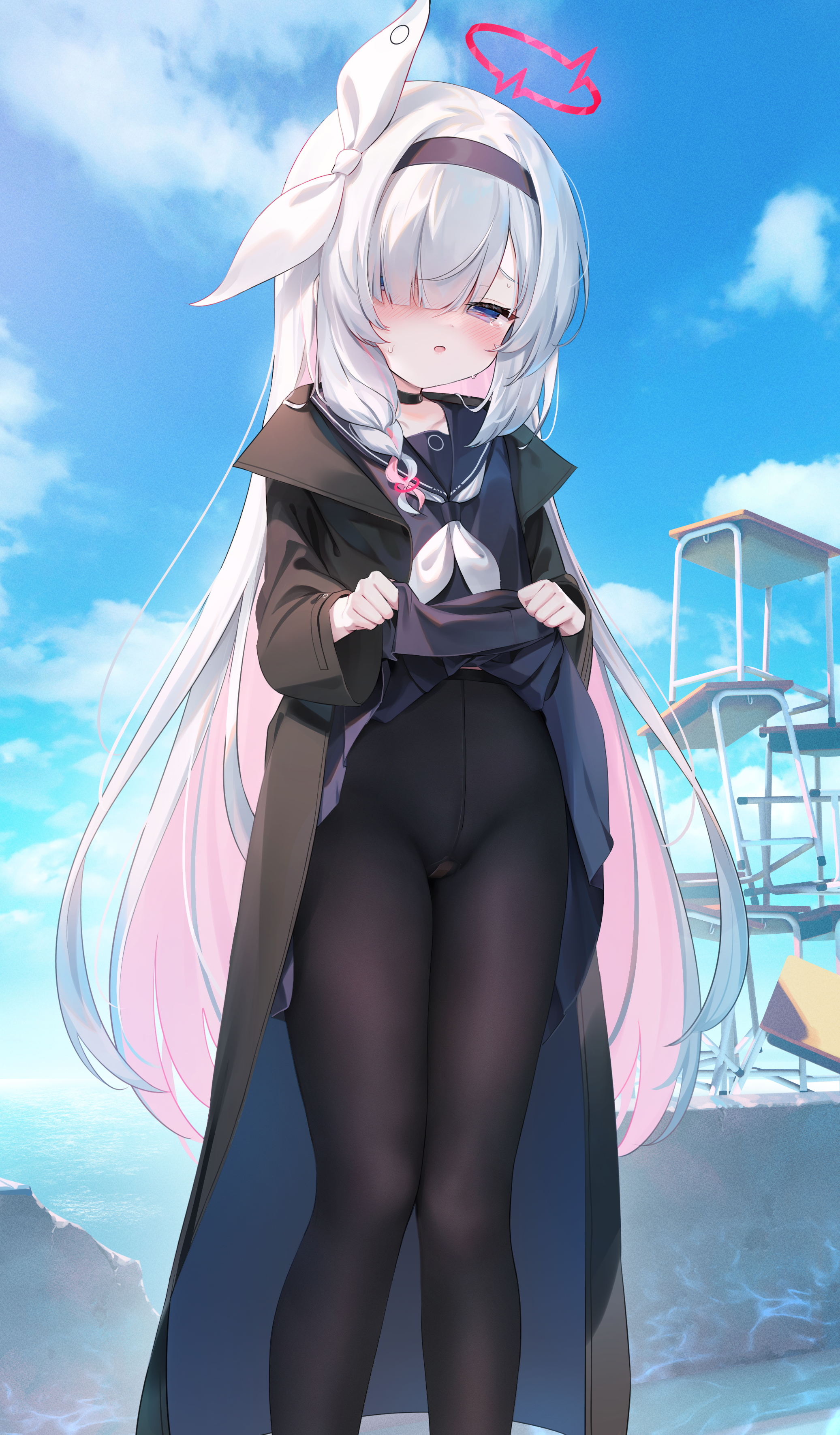 chen bin blue archive arona (blue archive) plana (blue archive) bandaid halo loli nopan pantyhose see through seifuku skirt lift…