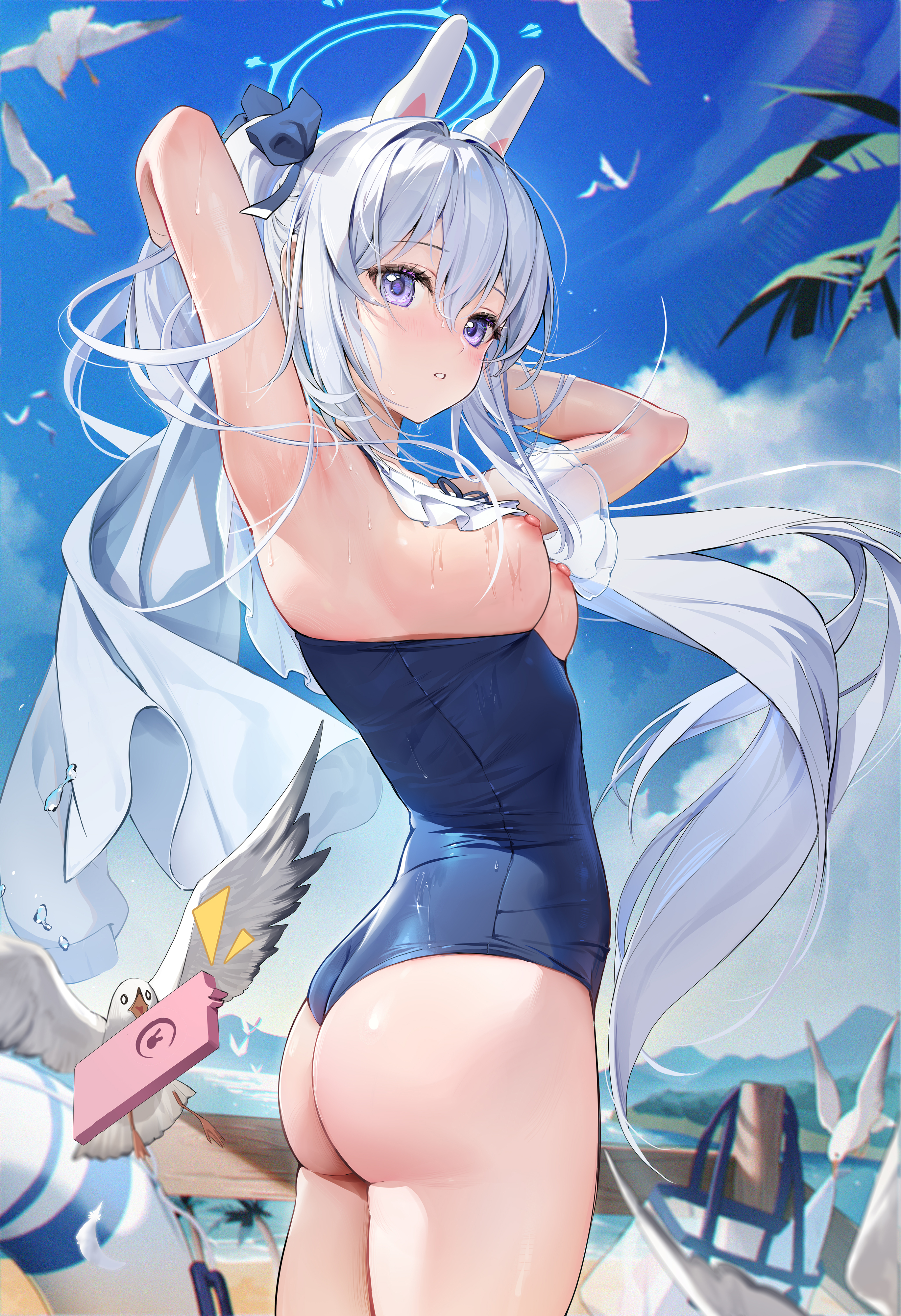 houkiboshi (mmjw7432) blue archive tsukiyuki miyako angel animal ears ass breasts bunny ears nipples photoshop swimsuits wardrobe…