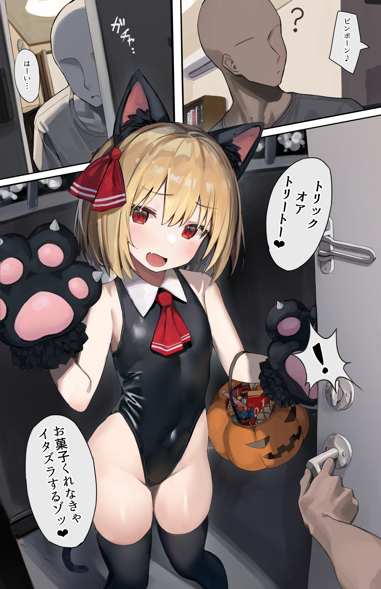 まめもち@毎週日曜イラスト投稿 ( #mamemochi1226 ) ハロウィンの夜に男1人の部屋を狙ってお菓子をもらいに来る猫仮装ルーミアちゃん https://t.co/PwYvwTRhyL