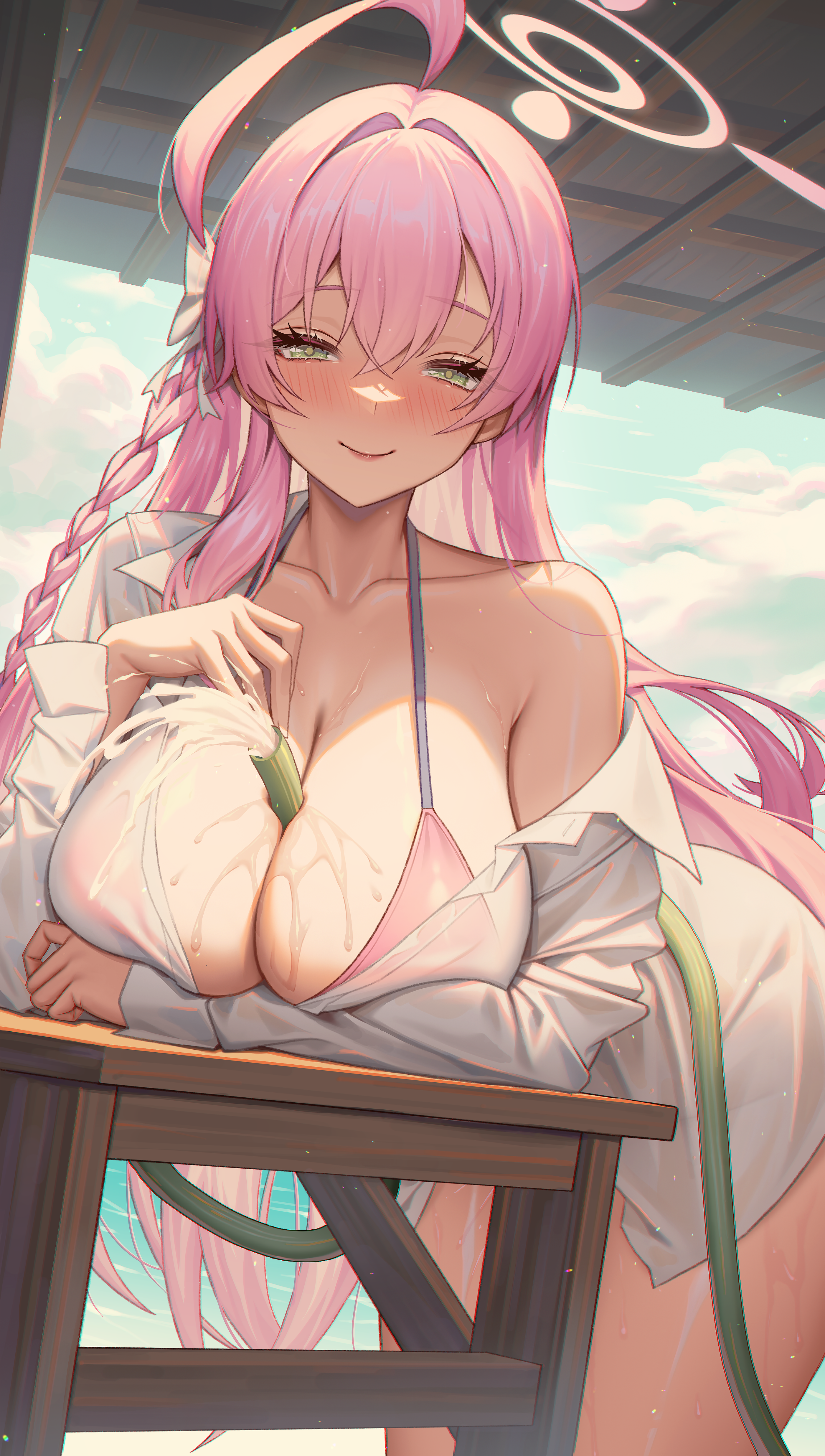 leaf98k blue archive urawa hanako angel bikini top bottomless dress shirt open shirt see through swimsuits wet wet clothes | #1109340…