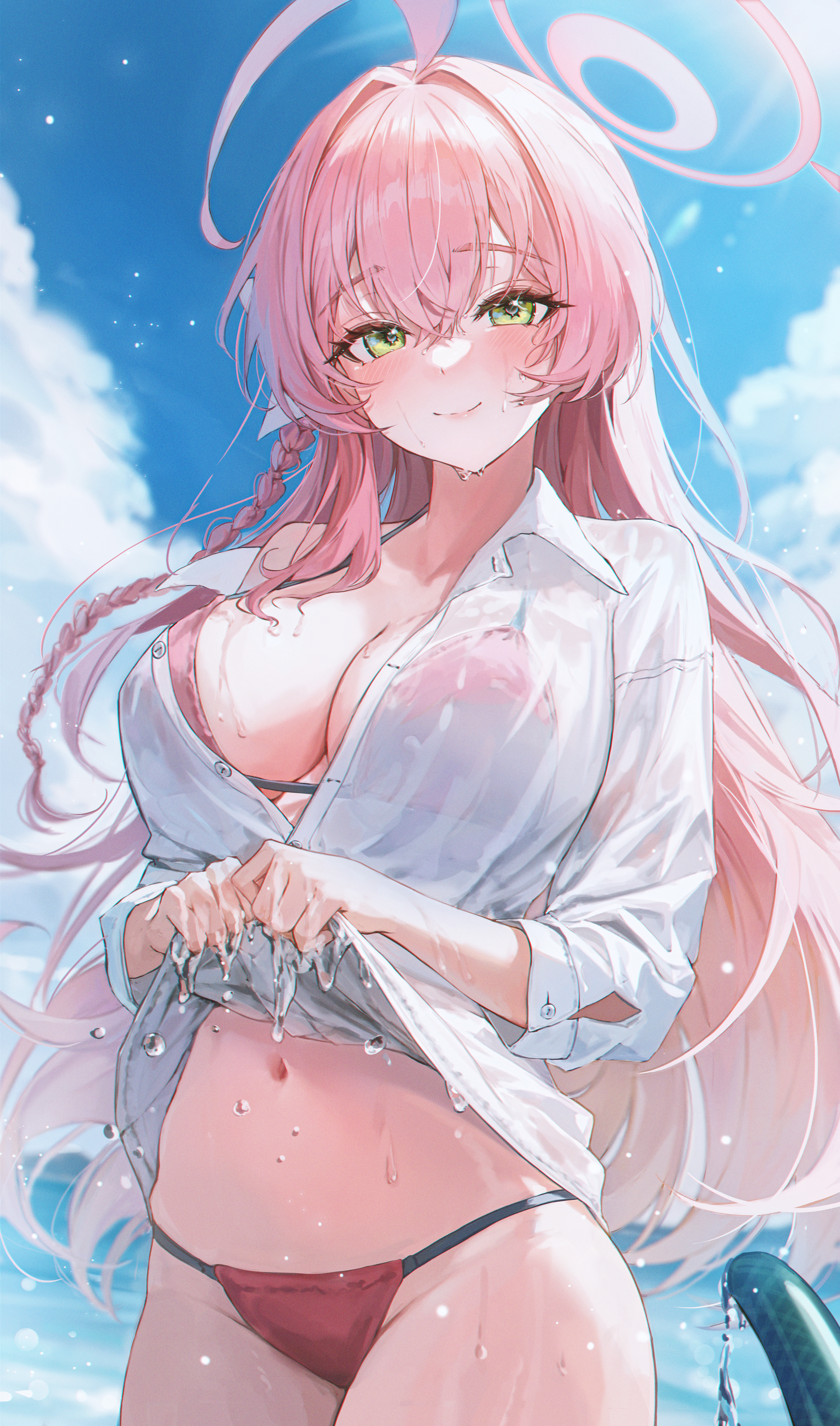 bbeedol blue archive urawa hanako angel bikini dress shirt open shirt see through shirt lift swimsuits wet wet clothes | #1115251…
