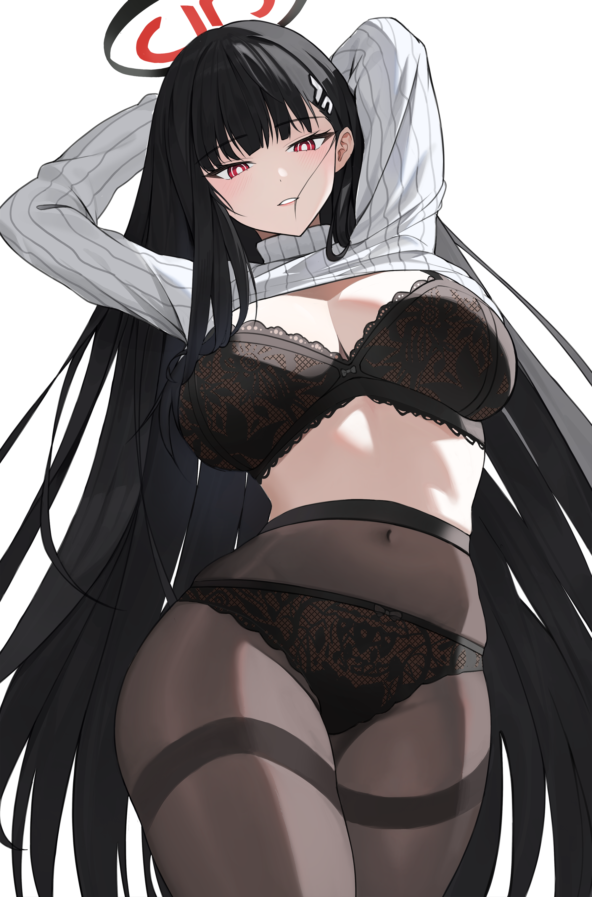 kookie blue archive tsukatsuki rio bra pantsu pantyhose shirt lift sweater | #1135272 | yande.re