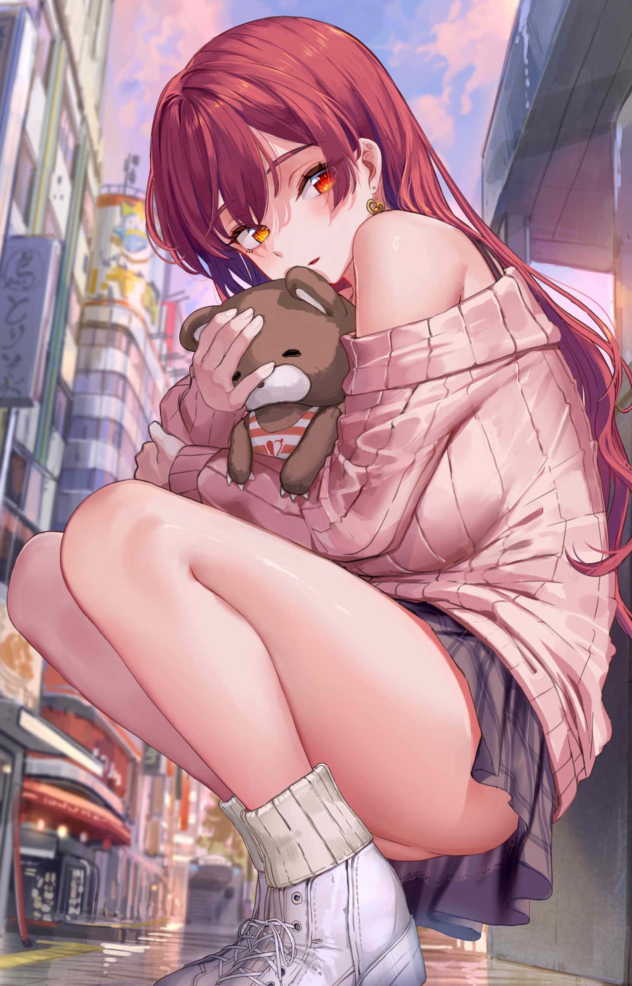 shin aosaai (yui 2021 x) hololive houshou marine breast hold heterochromia nopan skirt lift sweater | #1141421 | yande.re