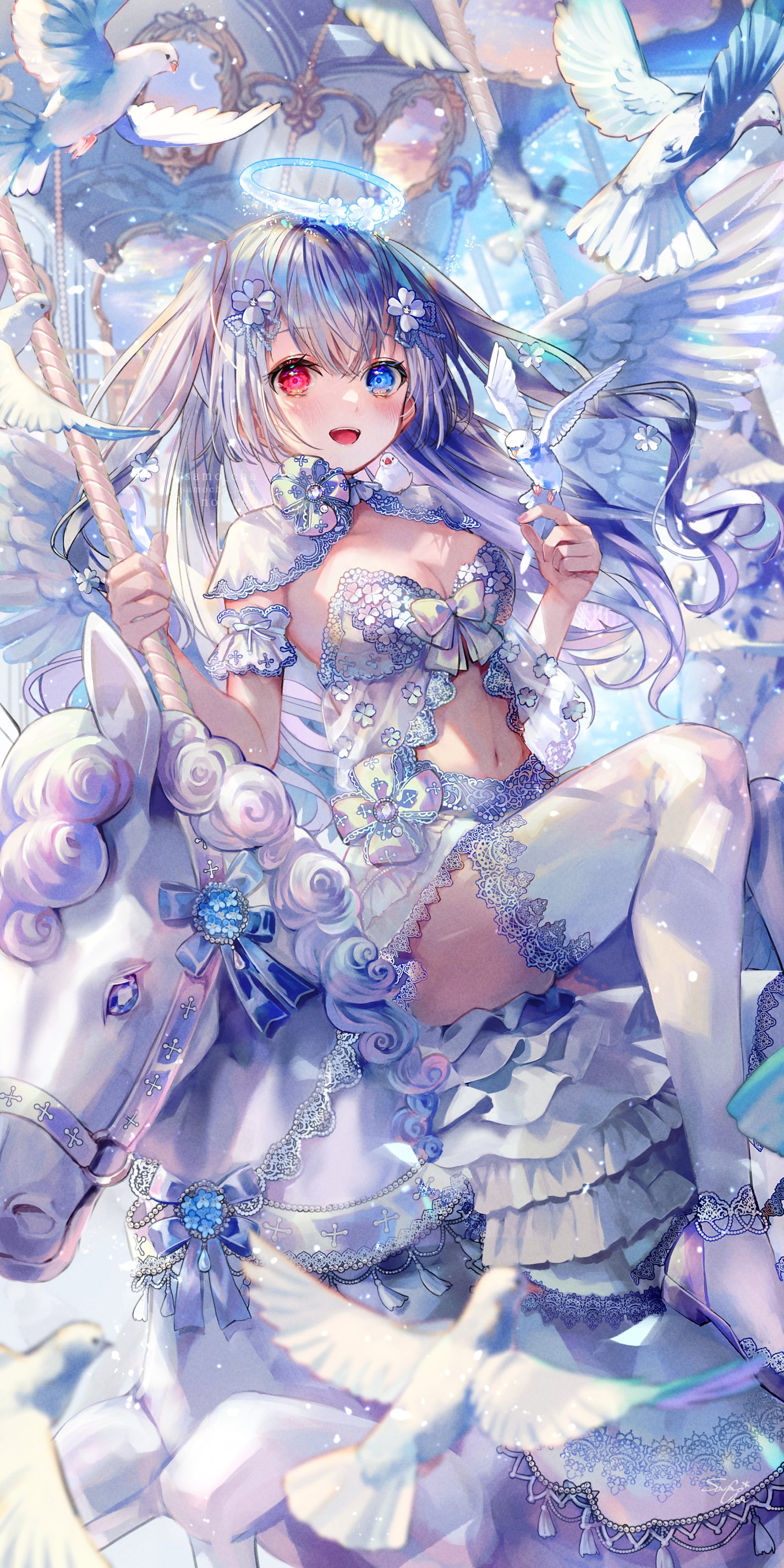 angel heterochromia no_bra san_mokmok05 thighhighs wings