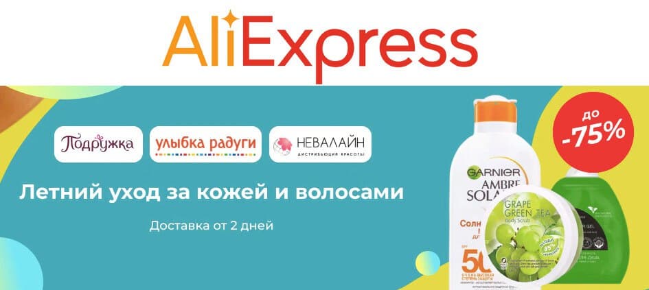 На AliExpress скидки до 75% на товары для ухода за кожей и волосами + промокоды на доп.скидки до 1500₽
