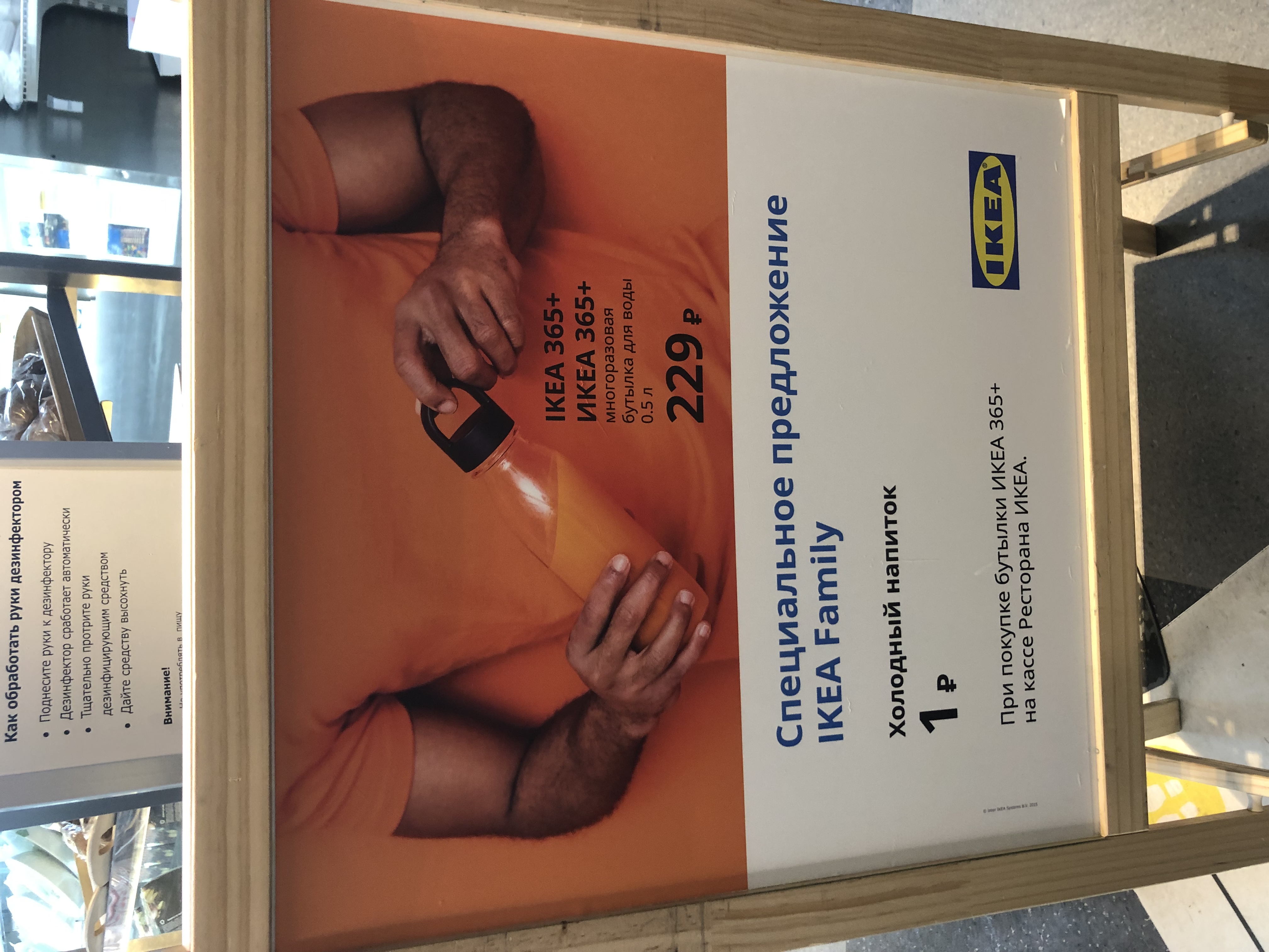 Если купить в IKEA бутылку для воды, то по карте IKEA Family холодный напиток будет стоить 1₽.