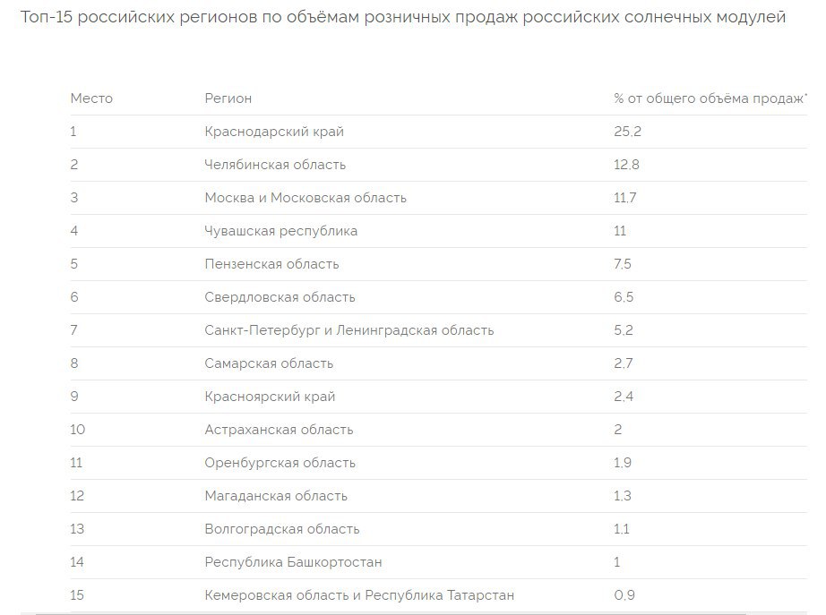 Удивительно, но факт. Челябинская область - вторая в Топ-15 российских регионов по объёмам розничных продаж российских солнечных модулей. На регион приходится 12,8% всех продаж.