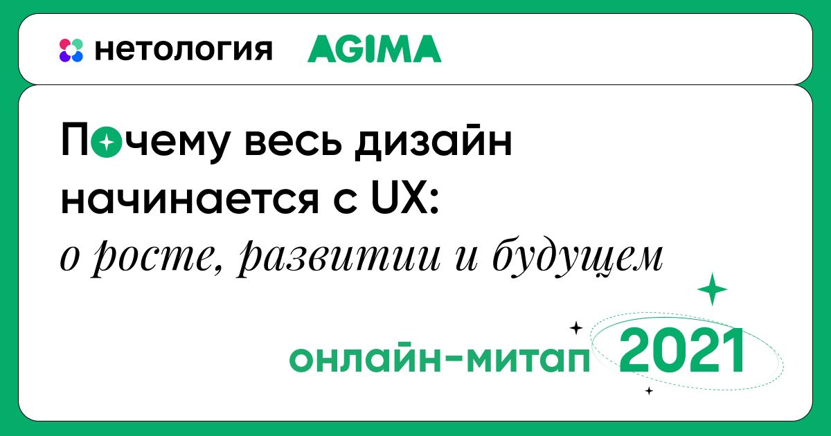 - AGIMA и «Нетология» подготовили онлайн-митап про важность UX-дизайна. Приглашаем всех 2 сентября в 18:00. Вот ссылка: https://netology.ru/free-lessons/issledovanie-dizajna#online_meetup.