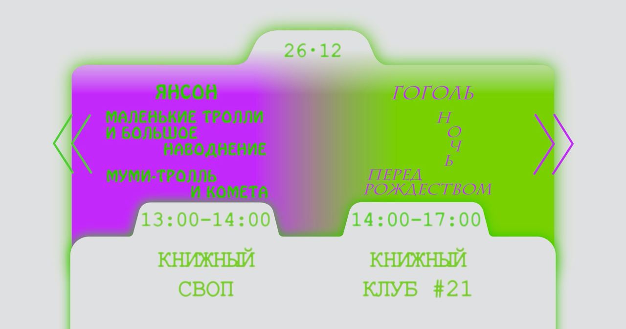 После же начнется книжный клуб, где обсудят книги, победившие в последнем голосовании — сказки Туве Янсон «Маленькие тролли и большое наводнение» и «Муми-тролль и комета» и повесть Николая Гоголя «Ночь перед Рождеством». Встречу по традиции проведет журналист Илья Клишин.