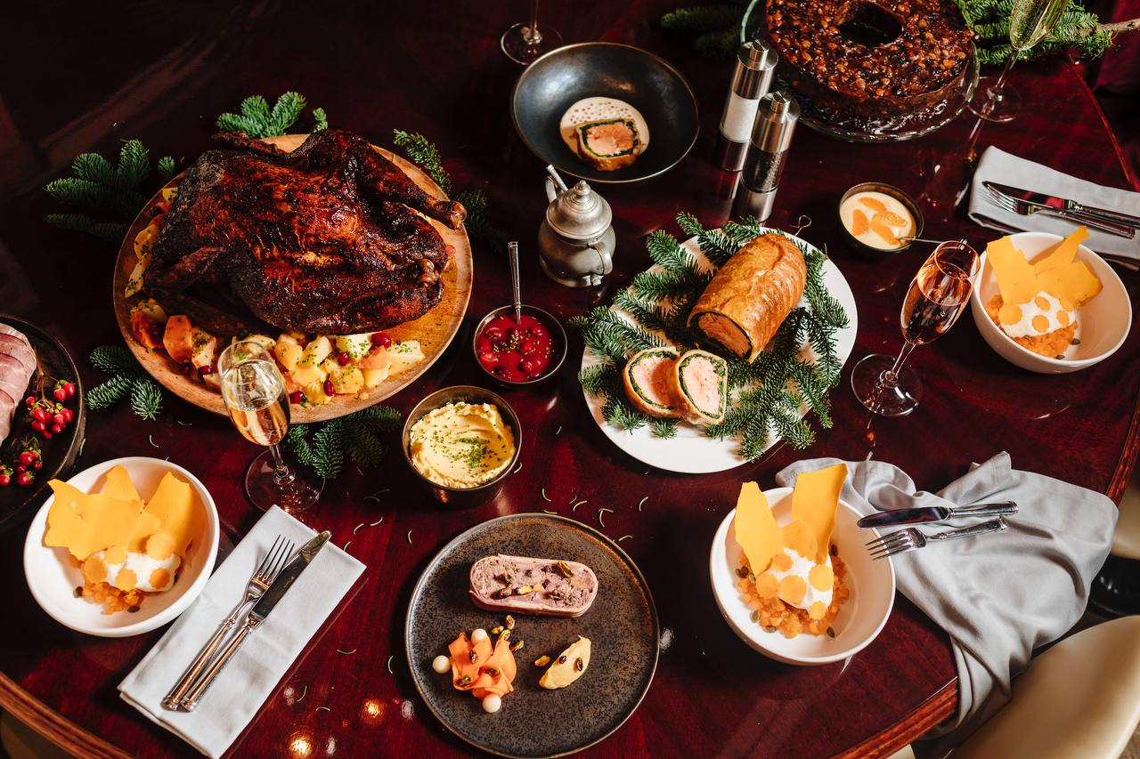 Рождественский ужин вдохновлен новогодними культурными традициями со всего мира. В гастрономической программе шесть курсов: от сорбета из фейхоа с шампанским на предесерт до классической запеченной индейки, которую шеф торжественно разделает при гостях. После окончания ужина гости приглашаются на традиционную рождественскую вечеринку с Марком Щедриным.