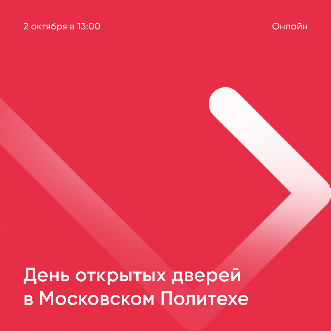День открытых дверей Московского Политеха в онлайн-формате состоится 2 октября в 13:00. Подключайтесь к трансляции на нашем YouTube-канале, на которой сможете:
