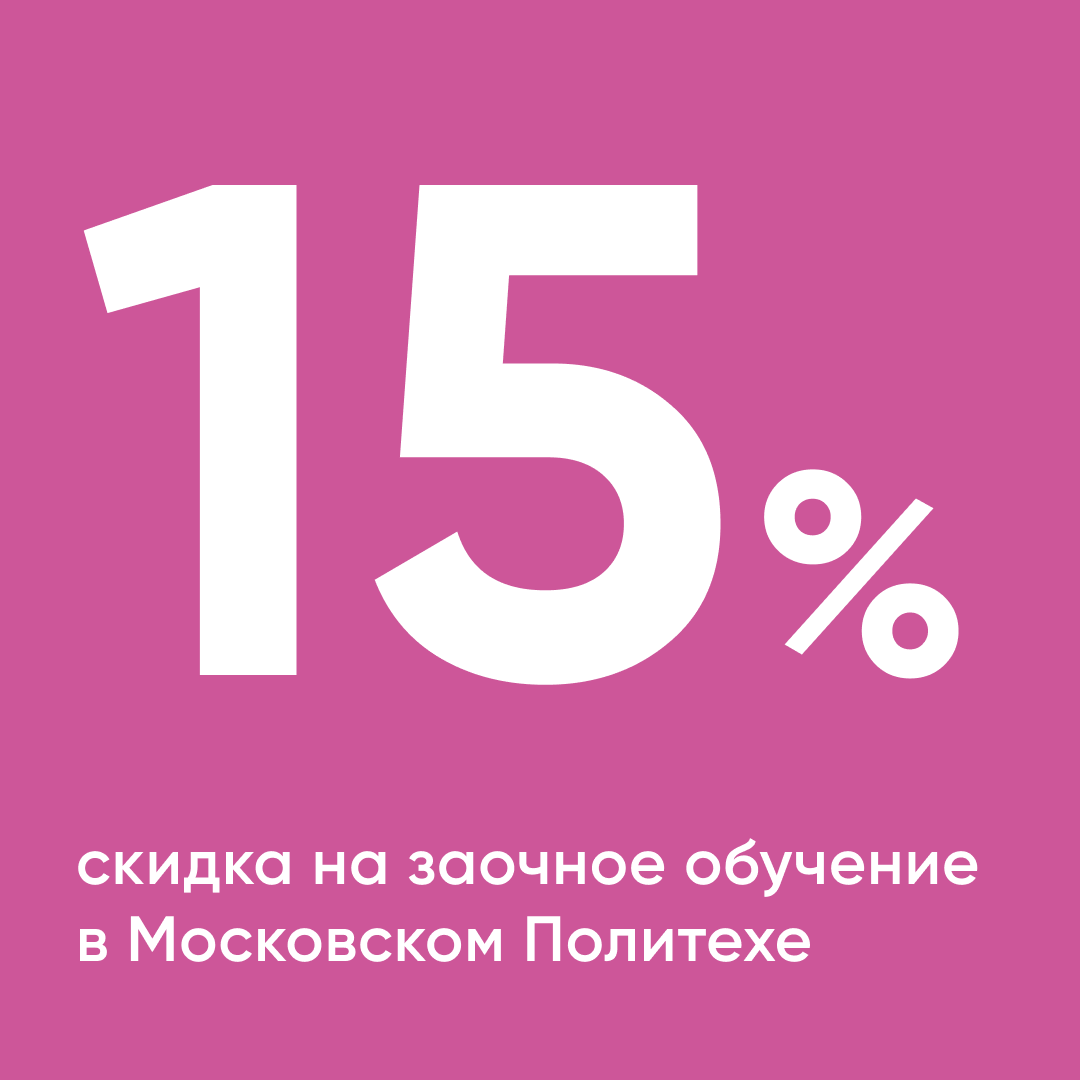 Обучение на заочной форме позволит вам освоить новые компетенции и получить второе высшее образование за короткий срок с приятным бонусом для обучающихся (выпускников) Московского Политеха — скидкой 15%. Подробные условия можно найти на сайте университета.