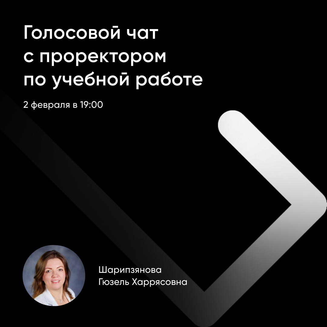 💬 2 февраля в 19:00 в нашем Telegram-канале пройдет голосовой чат с проректором по учебной работе Гюзель Харрясовной Шарипзяновой.