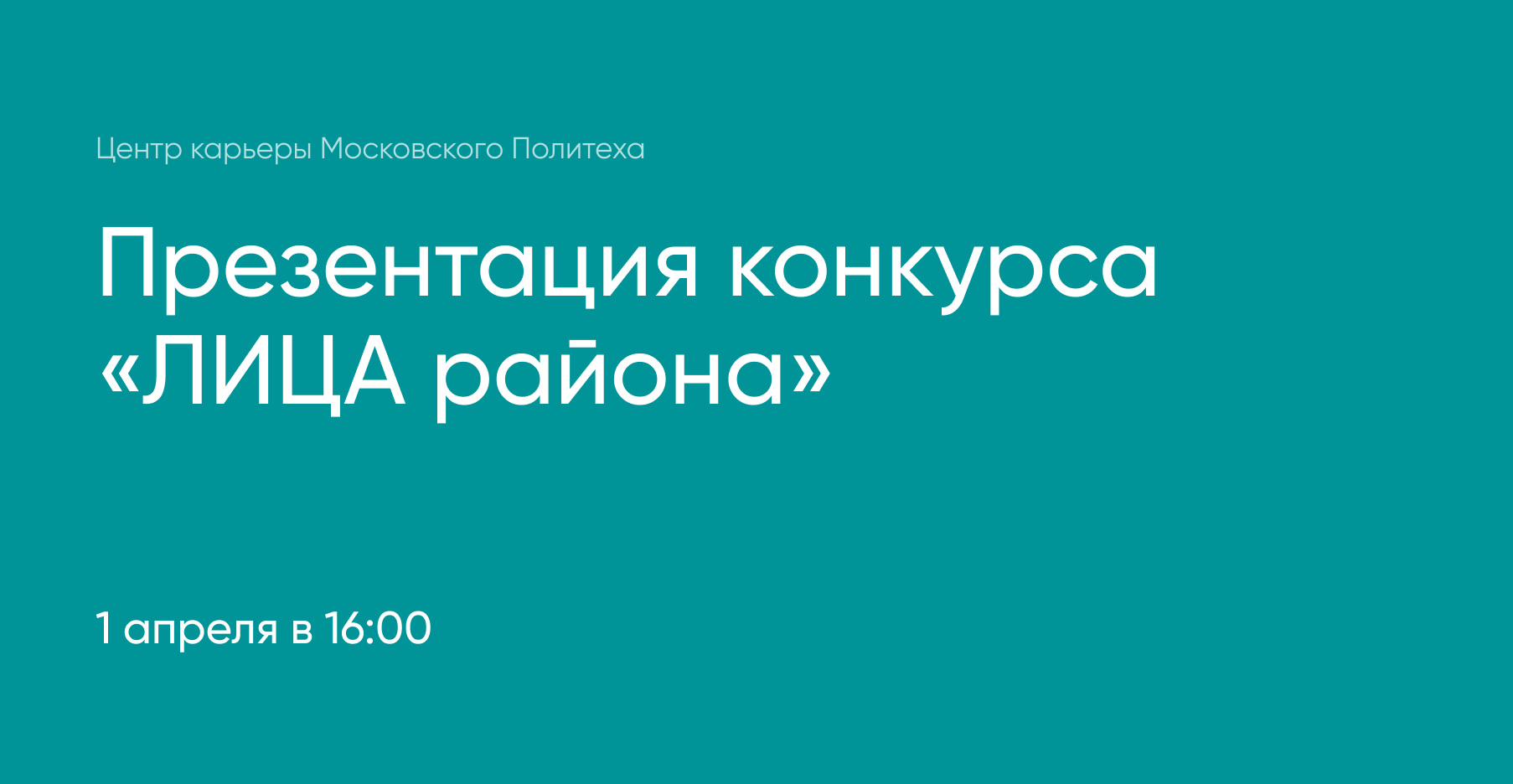 1 апреля в корпусе Московского Политеха на Большой Семеновской пройдет презентация конкурса «ЛИЦА района». В 16:00 в Точке кипения (аудитория А-100) организаторы расскажут подробно о проекте.